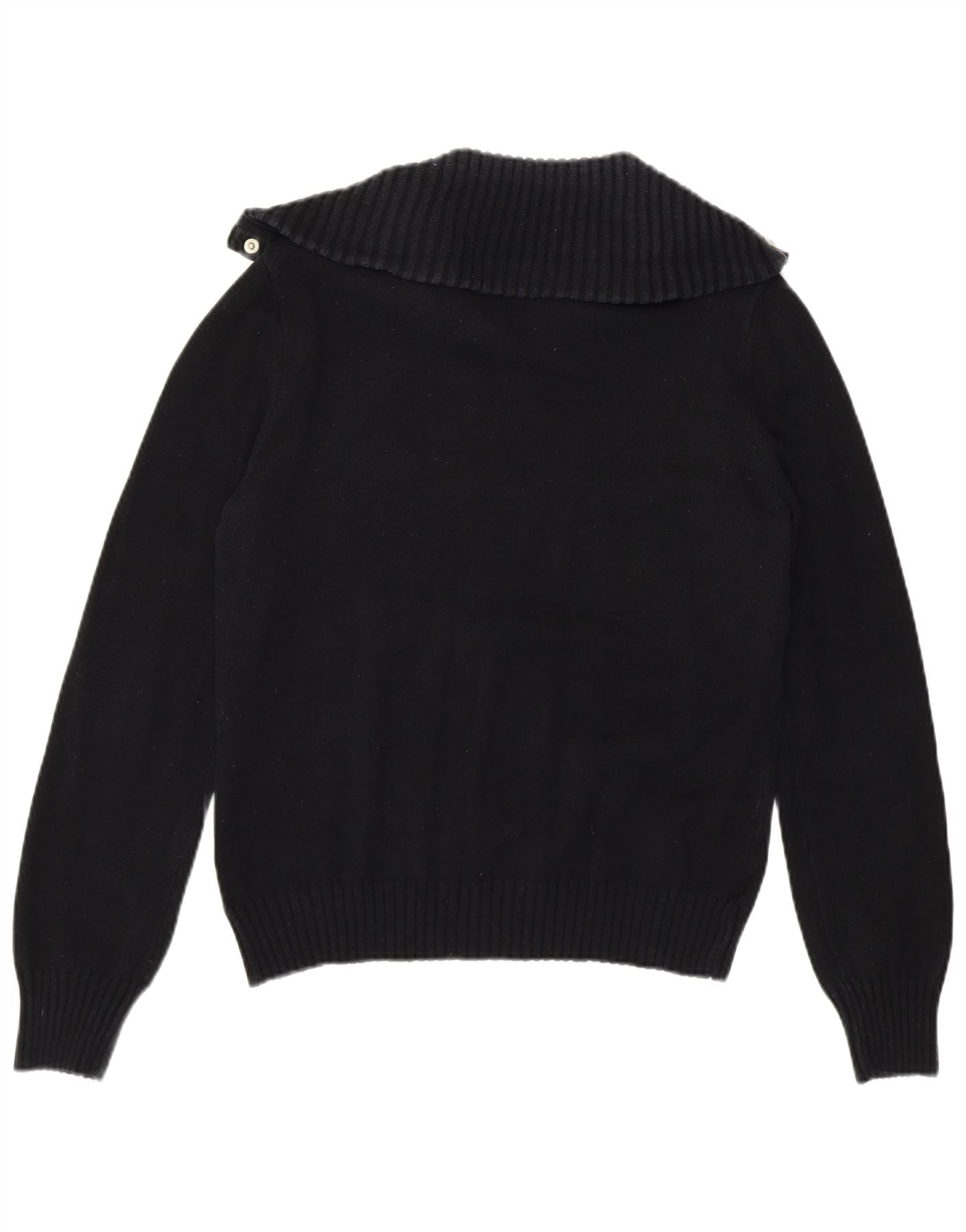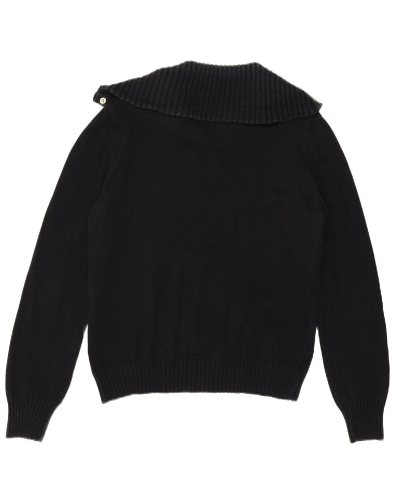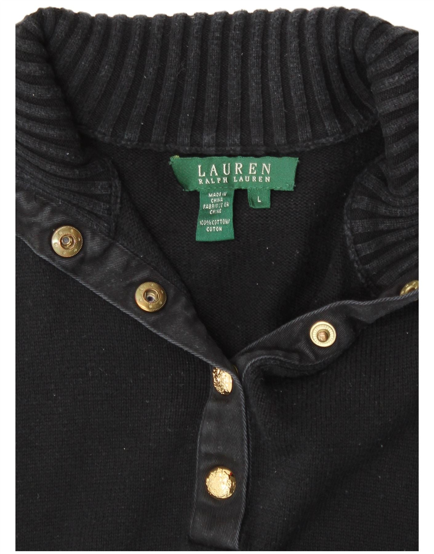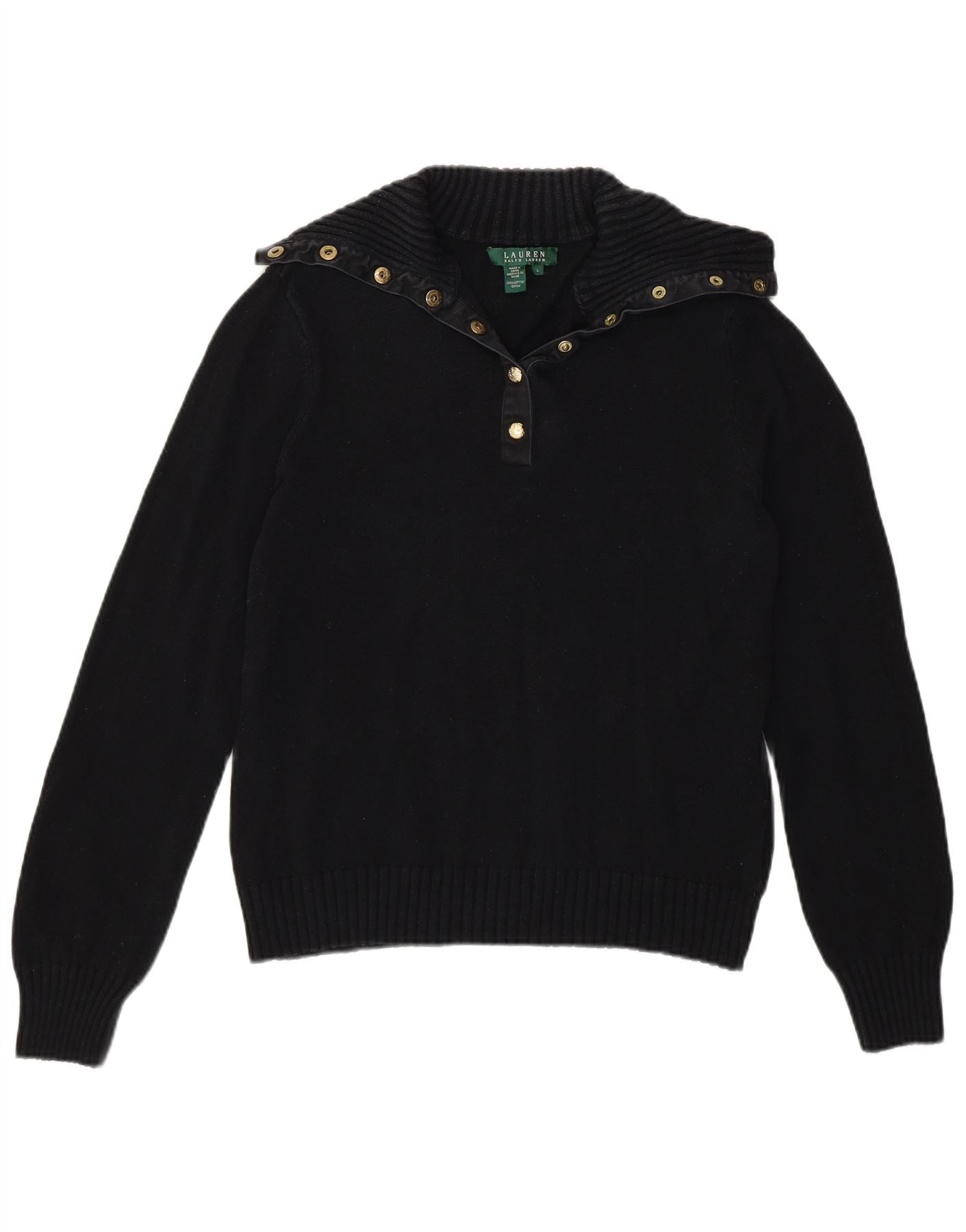 RALPH LAUREN Womens Button Neck Jumper Sweater UK 14 Large Black Cotton