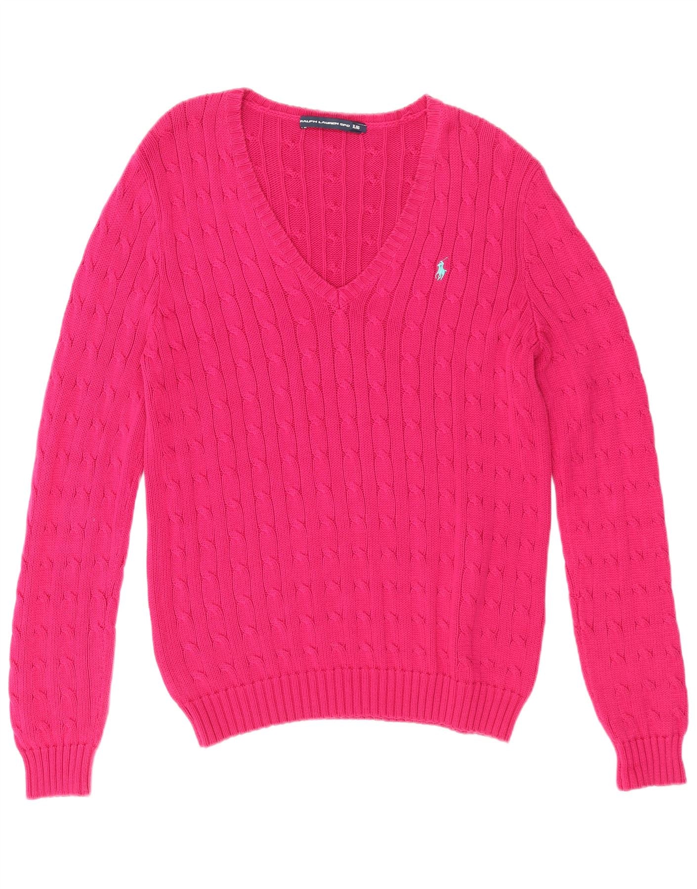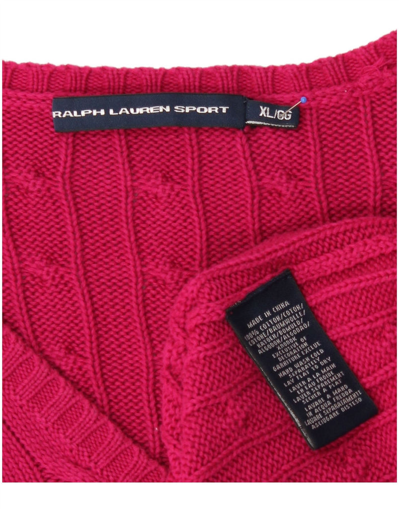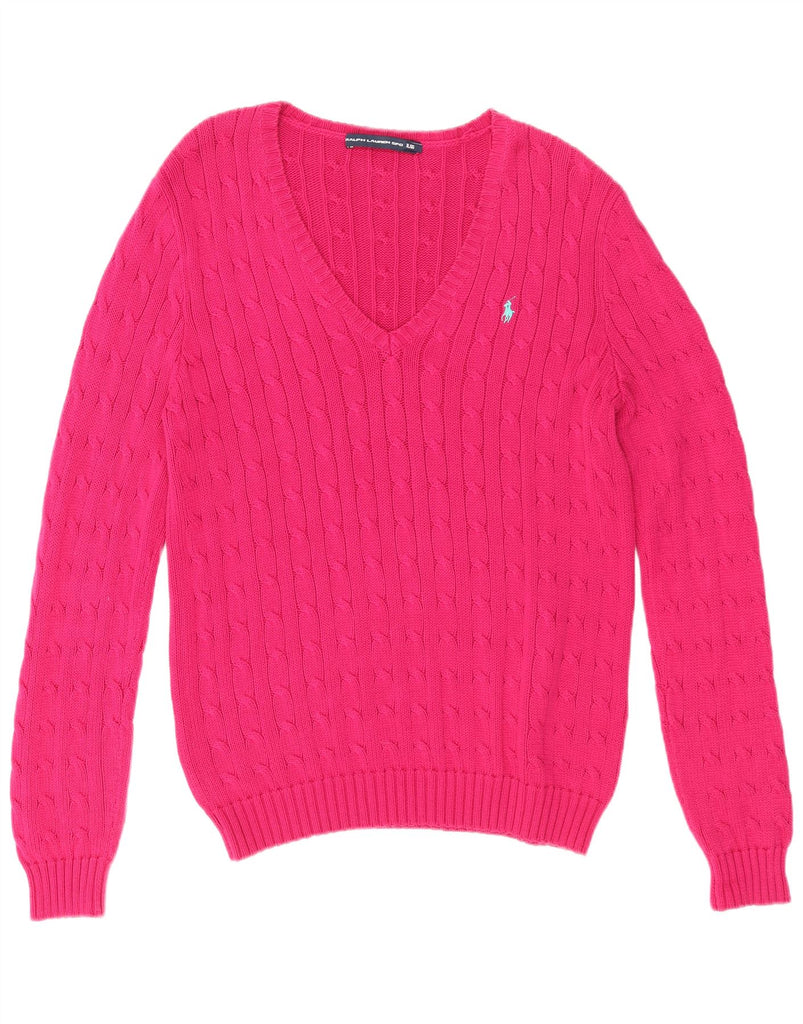 RALPH LAUREN Womens Grant Fit V-Neck Jumper Sweater UK 18 XL Pink Cotton