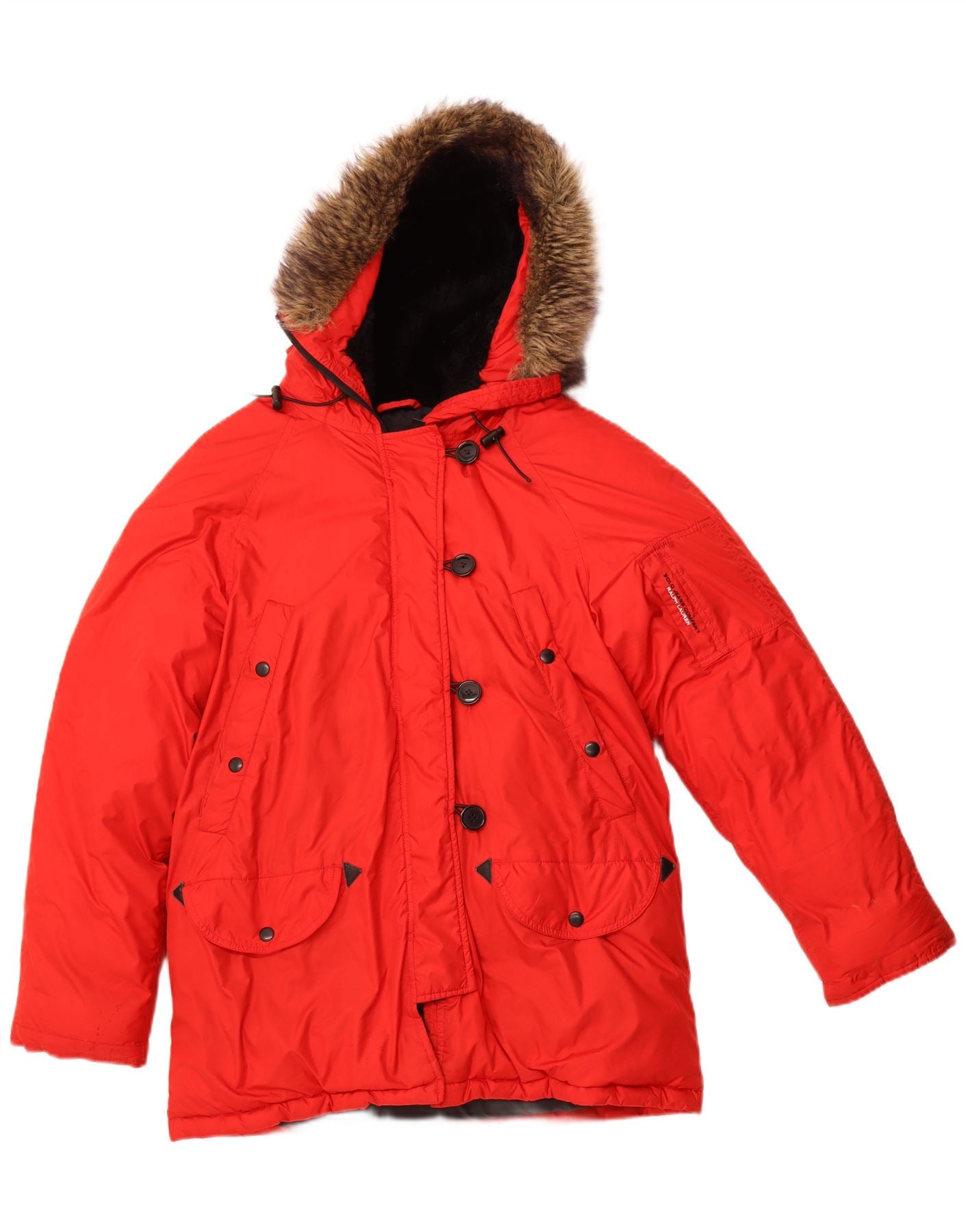 RALPH LAUREN Damska kurtka parka z kapturem UK 14, średnia czerwona zimowa