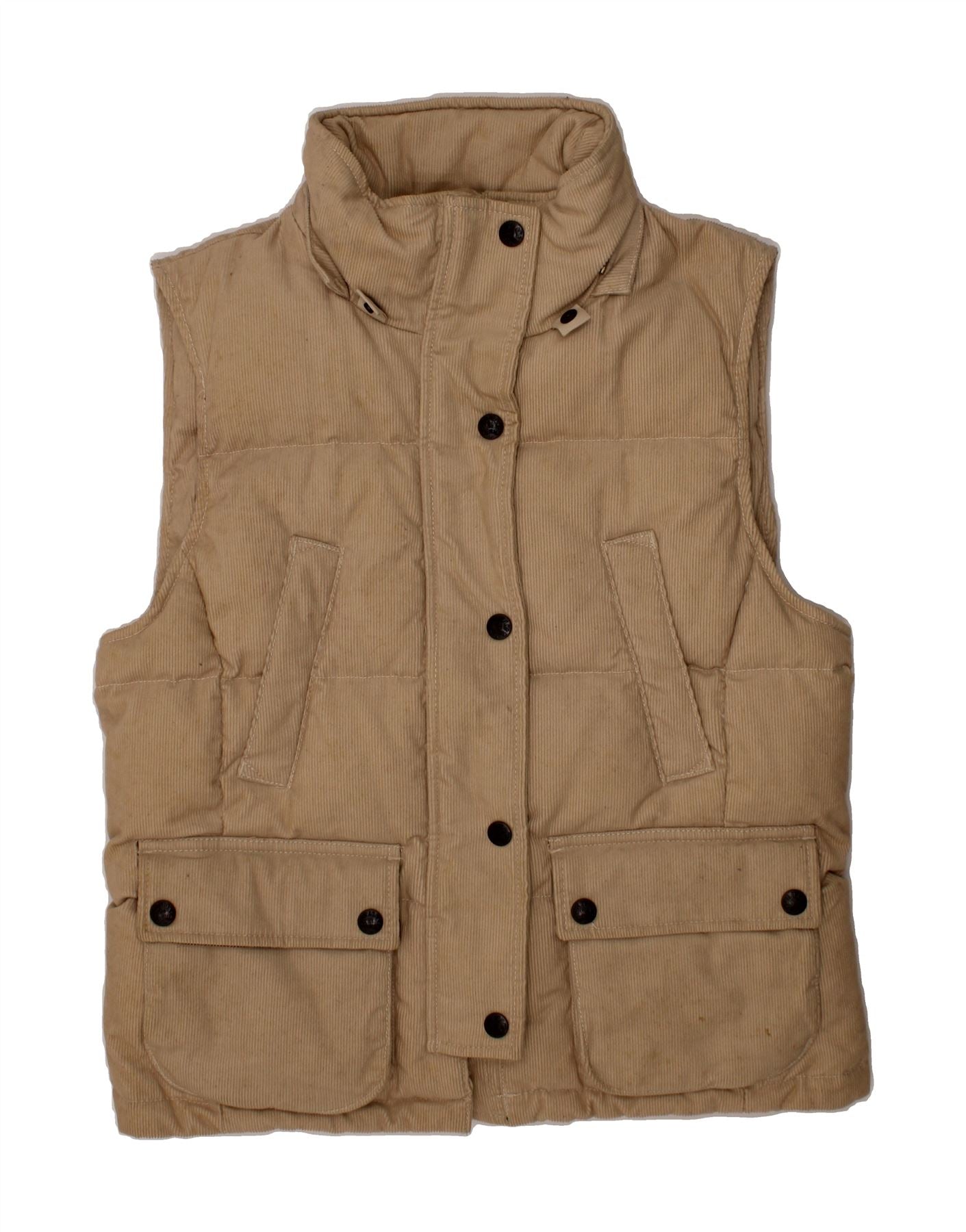 RALPH LAUREN Womens Padded Gilet UK 14 Medium Beige Pinstripe Cotton