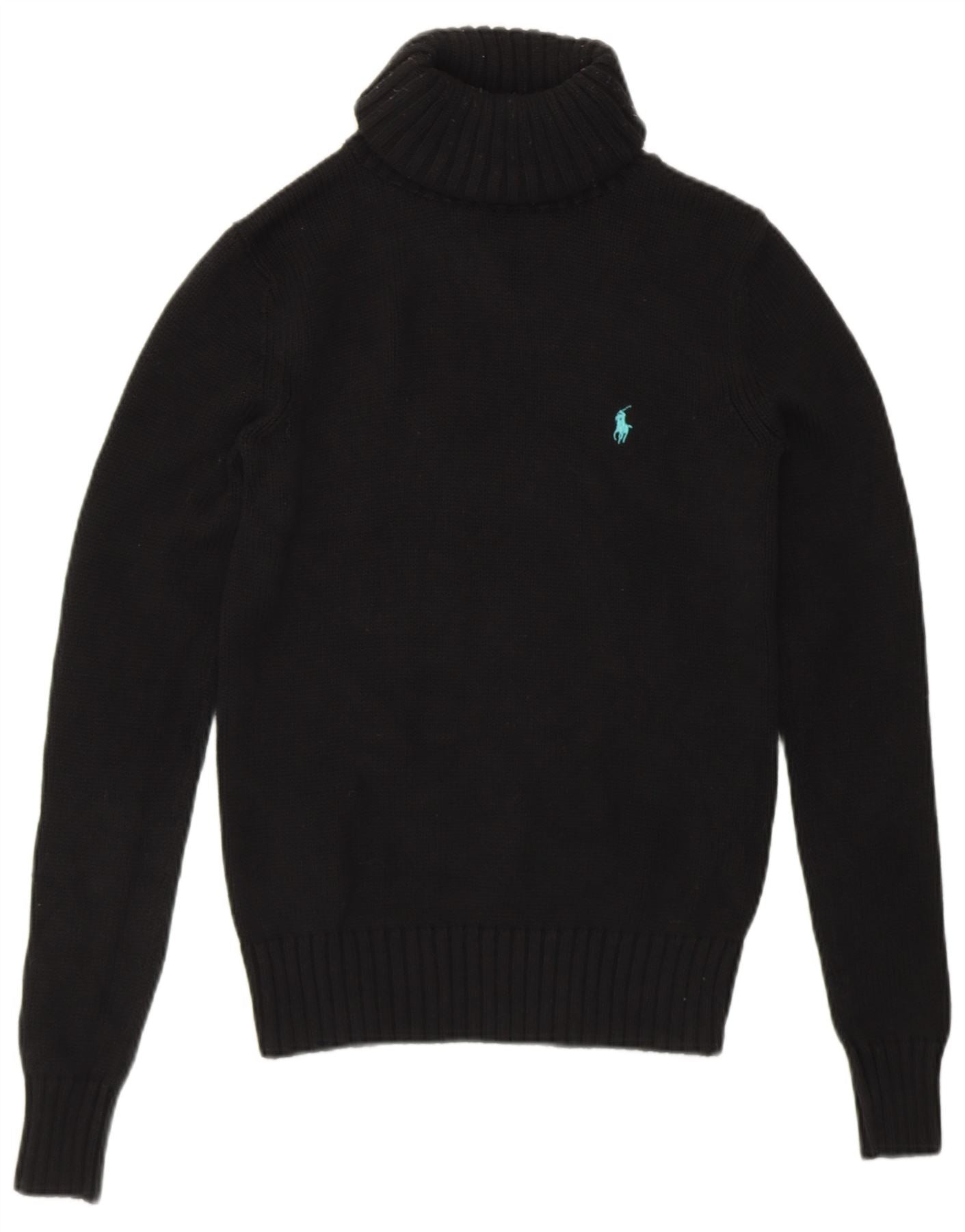 RALPH LAUREN Damski sweter z golfem UK 8, mały, czarny, bawełniany