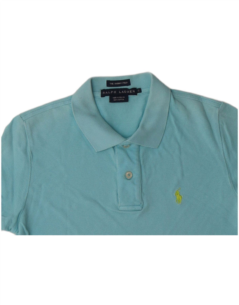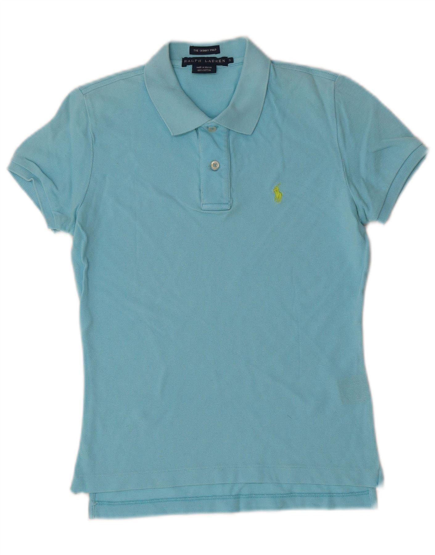 RALPH LAUREN Womens Skinny Polo Shirt UK 10 Small Blue Cotton