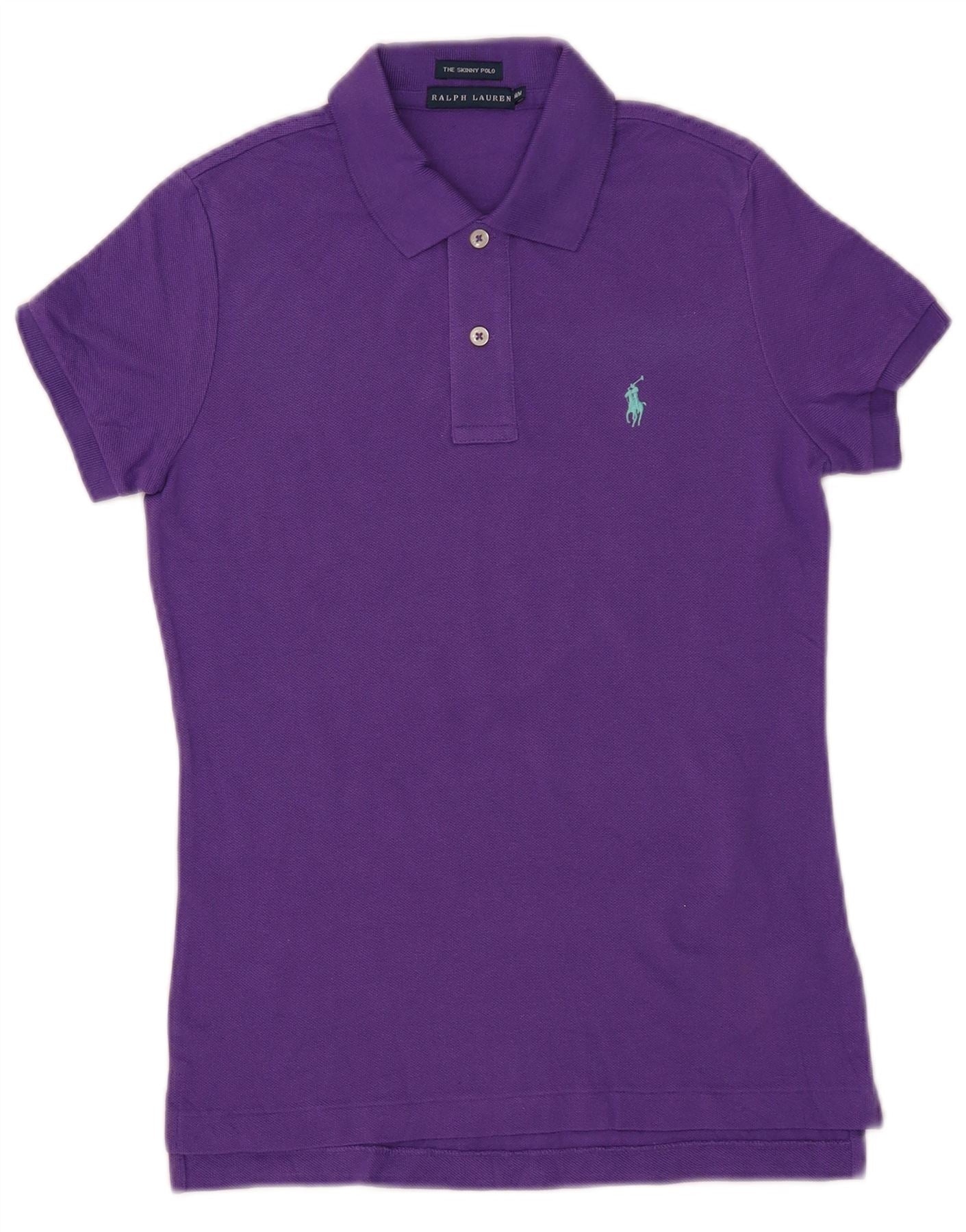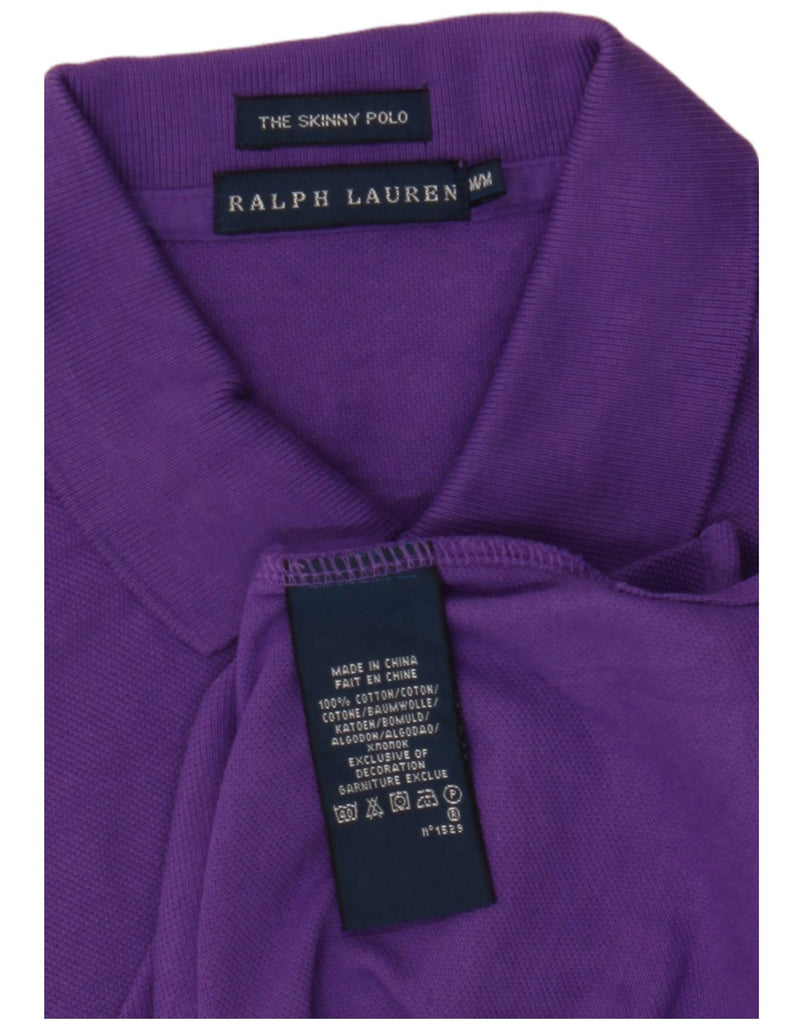 RALPH LAUREN Womens Skinny Polo Shirt UK 12 Medium Purple Cotton