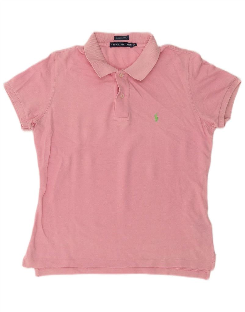 RALPH LAUREN Womens Skinny Polo Shirt UK 14 Large Pink Cotton