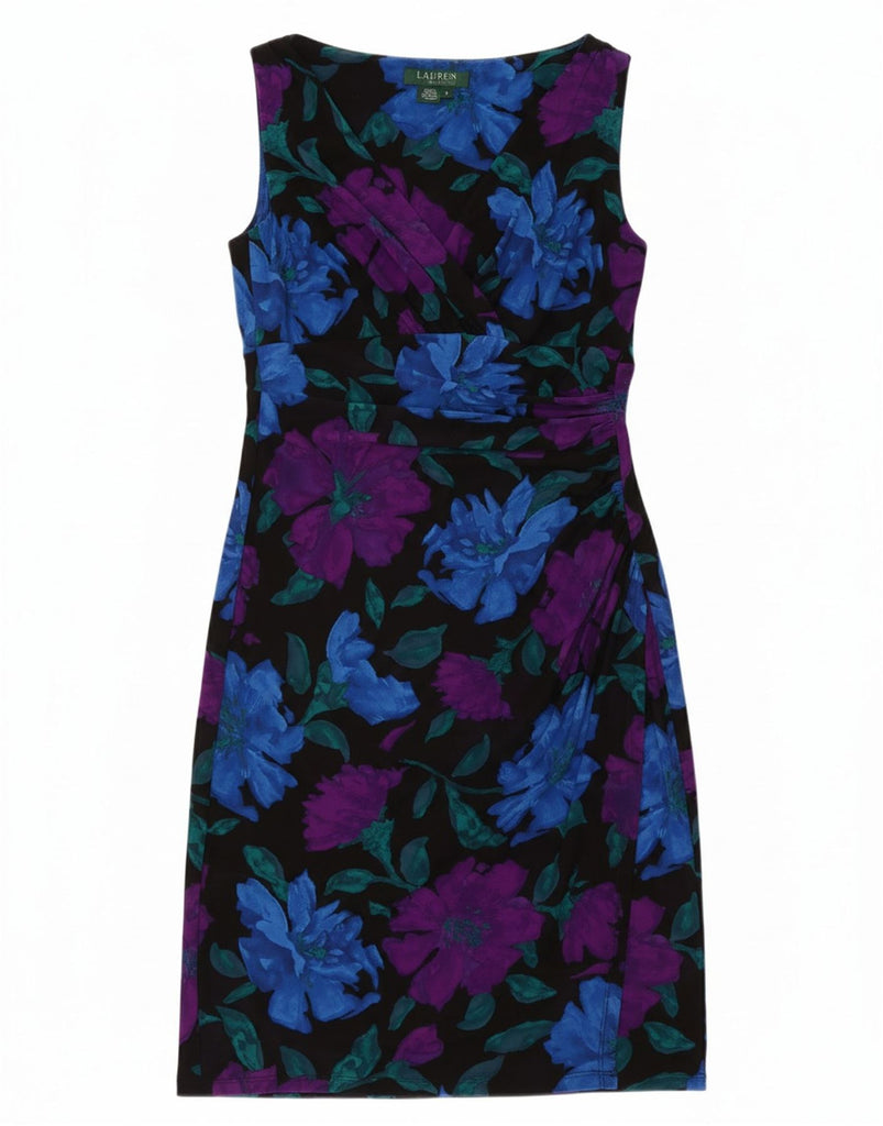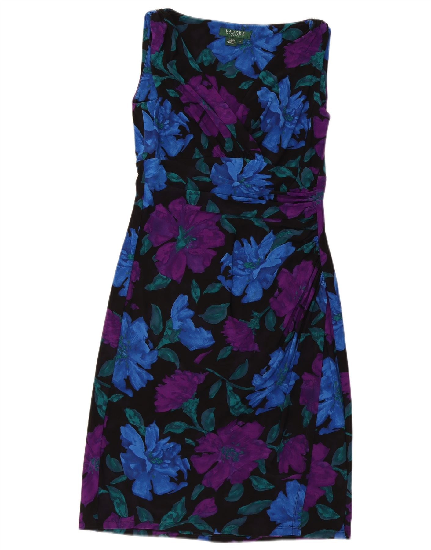 RALPH LAUREN Womens Sleeveless Sheath Dress US 8 Medium Navy Blue Floral