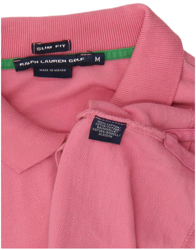 RALPH LAUREN Womens Slim Fit 3/4 Sleeve Polo Shirt UK 14 Medium Pink