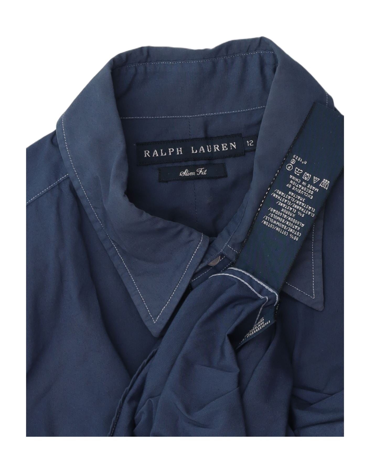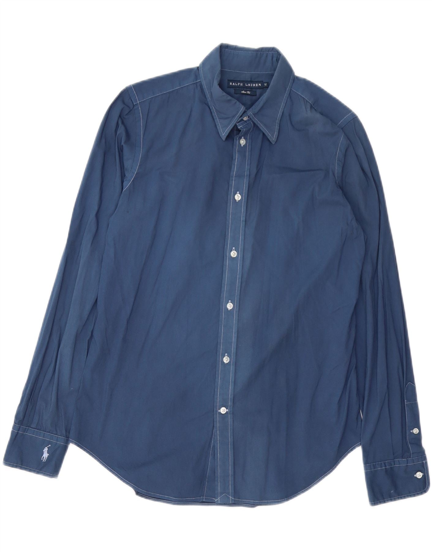 RALPH LAUREN Womens Slim Fit Shirt US 12 Large Navy Blue Cotton