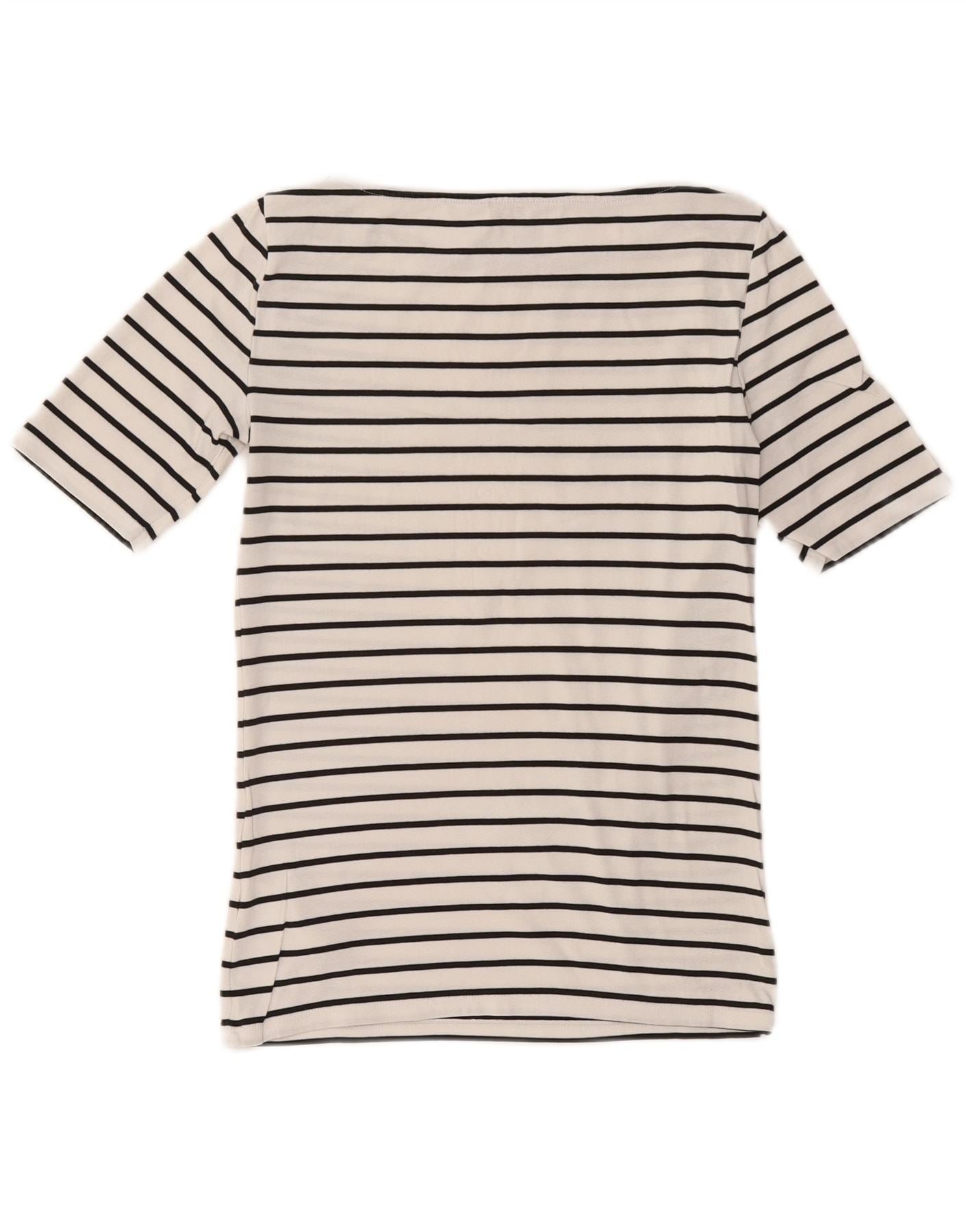 RALPH LAUREN Womens T-Shirt Top UK 10 Small White Striped Cotton