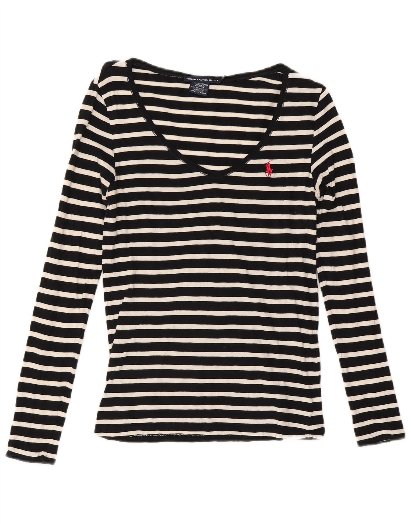 Damski top Ralph Lauren z długim rękawem, UK 12, średniej wielkości, czarny, bawełniany w paski