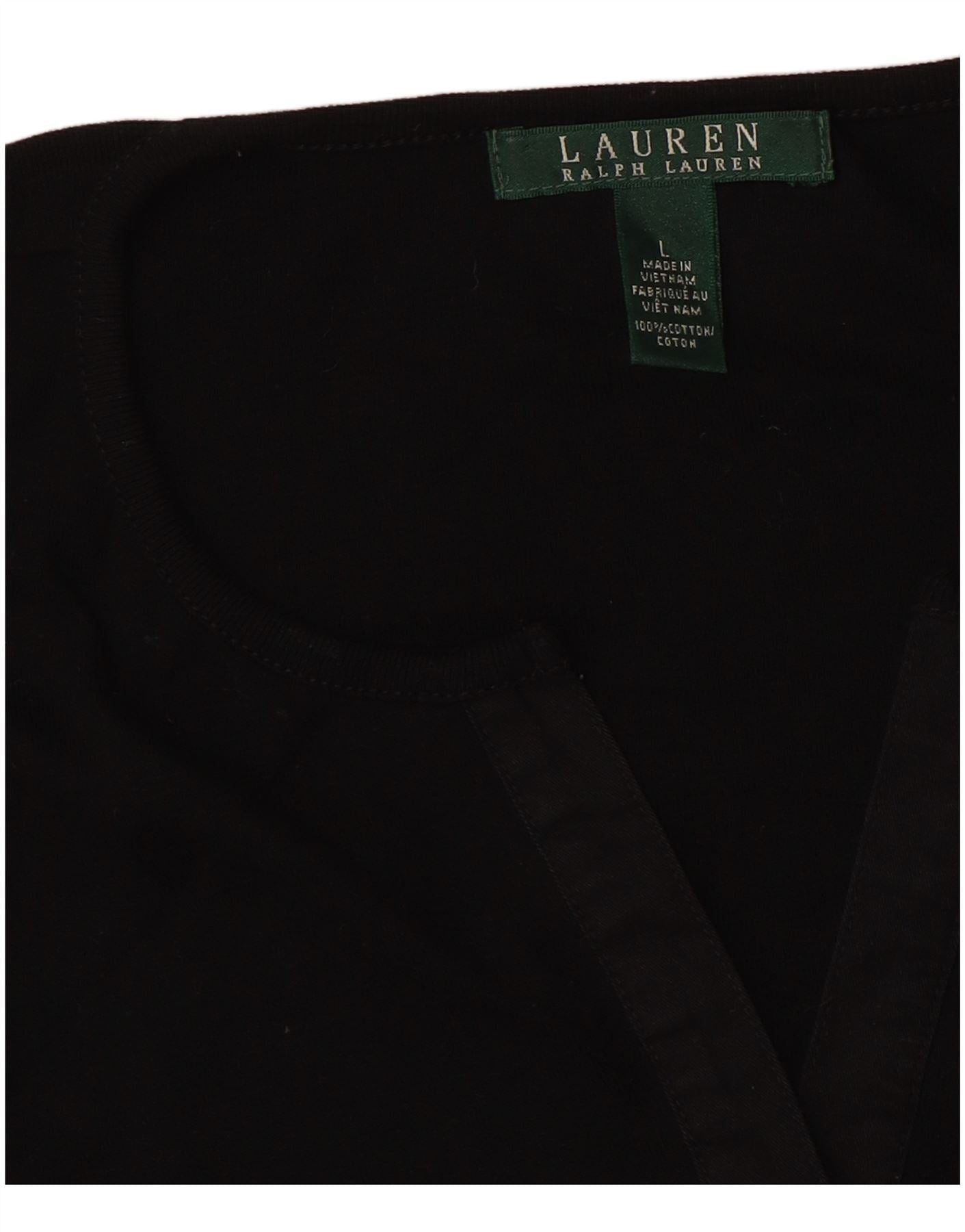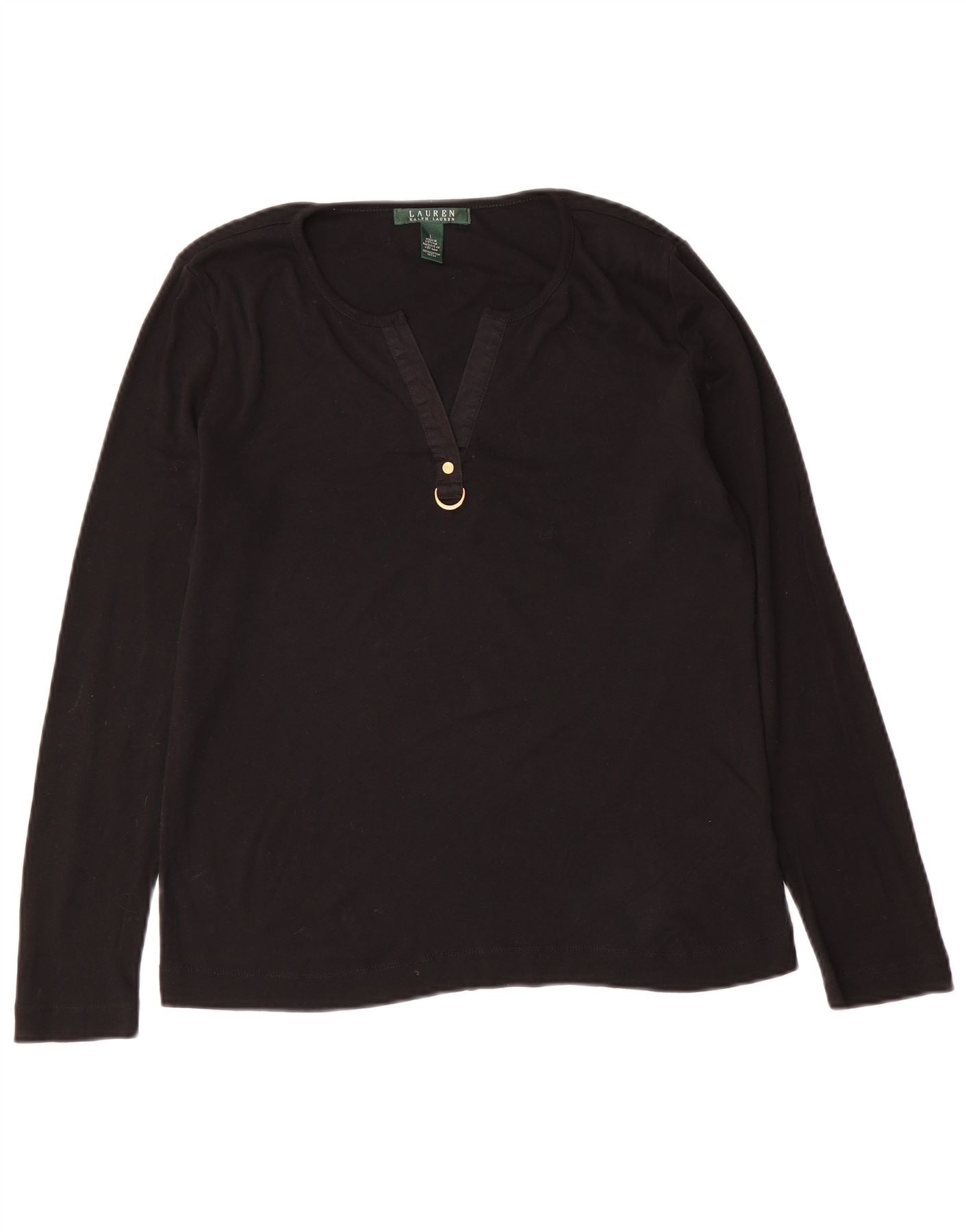 RALPH LAUREN Damski top z długim rękawem UK 16, duży, czarny, bawełniany