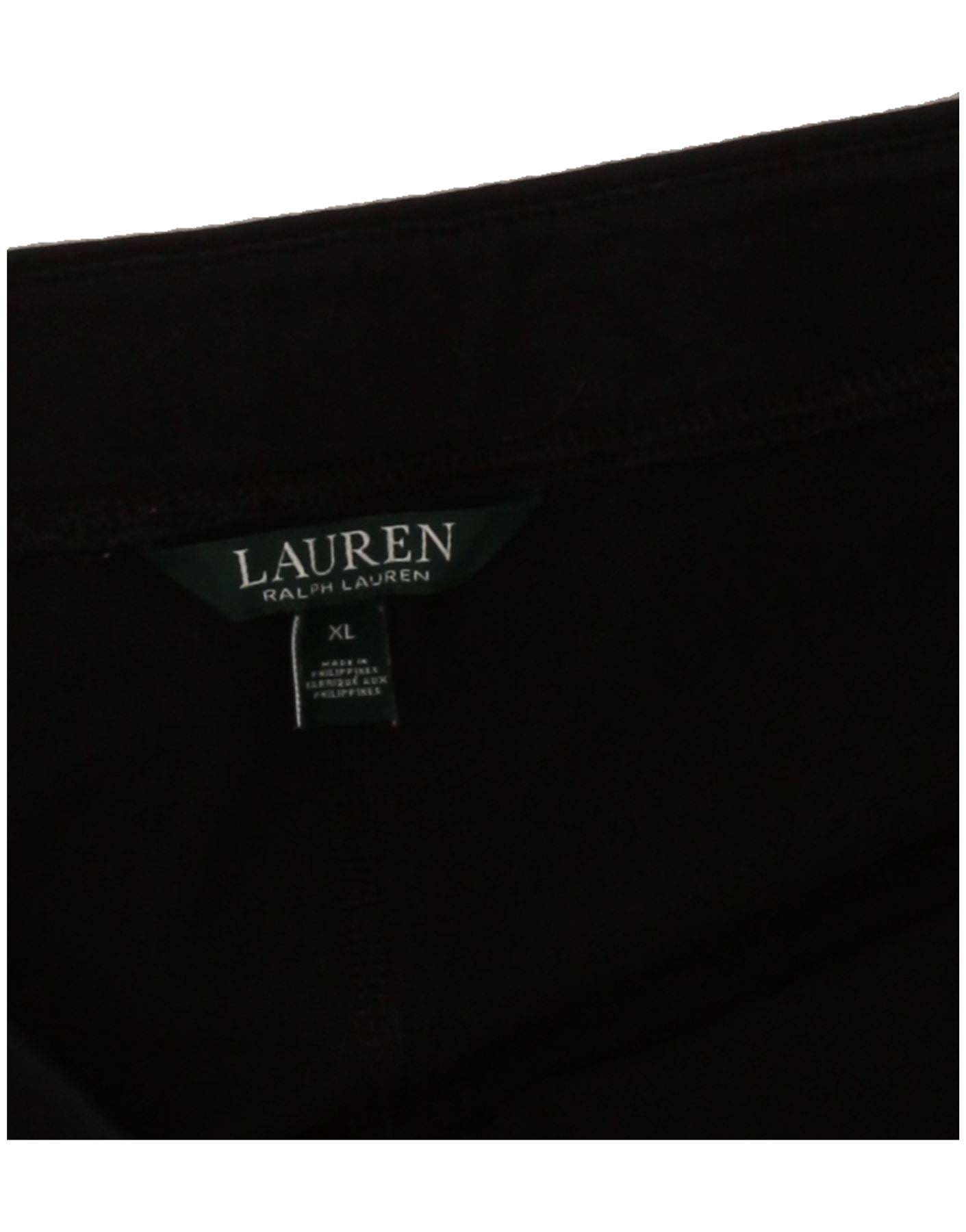 - AI Description: Ralph Lauren women's black capri trousers in a slim fit. Crafted from a blended fabric with stretch for comfort. These classic trousers feature a pull-on closure and ankle zips for added detail. Pre-owned in excellent condition, with minor visible wear to the zipper. Size XL.