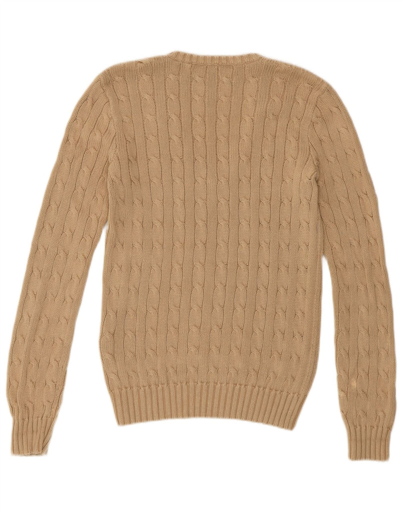 RALPH LAUREN Womens V-Neck Jumper Sweater UK 10 Small Beige Cotton