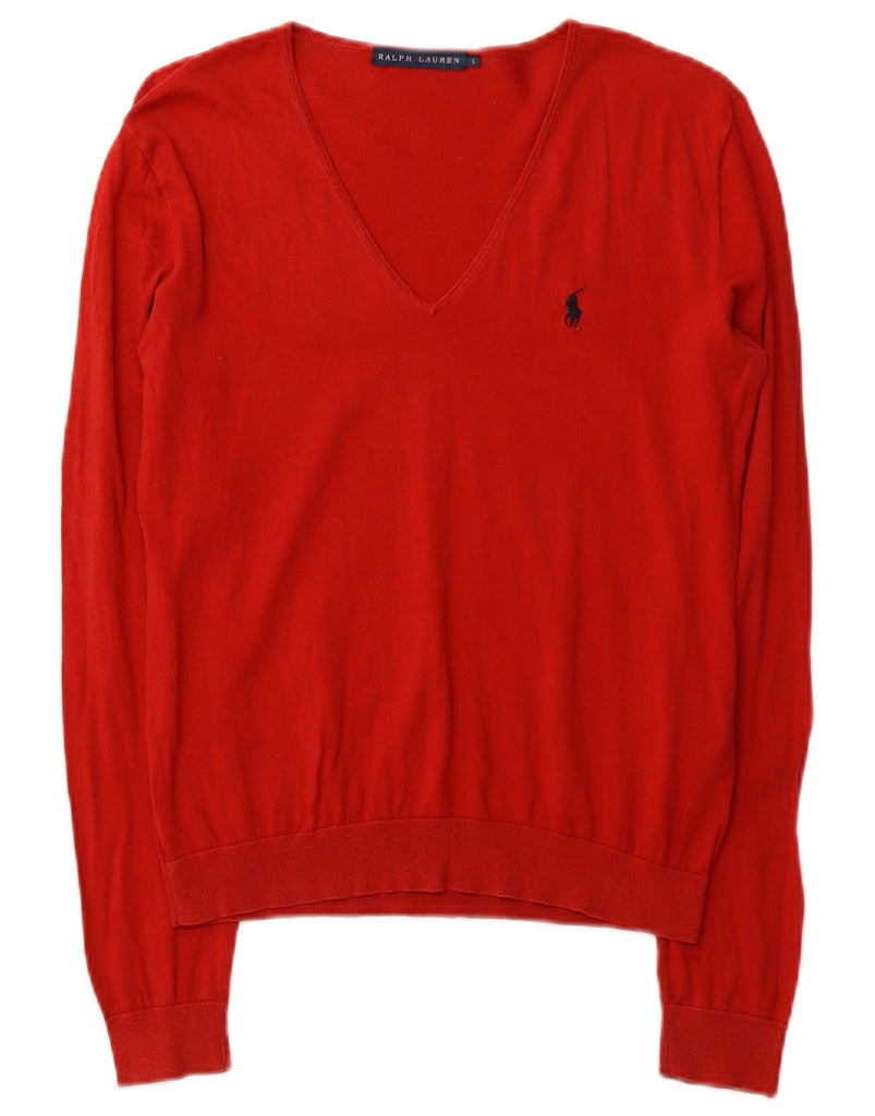 RALPH LAUREN Womens V-Neck Jumper Sweater UK 16 Large Red Cotton