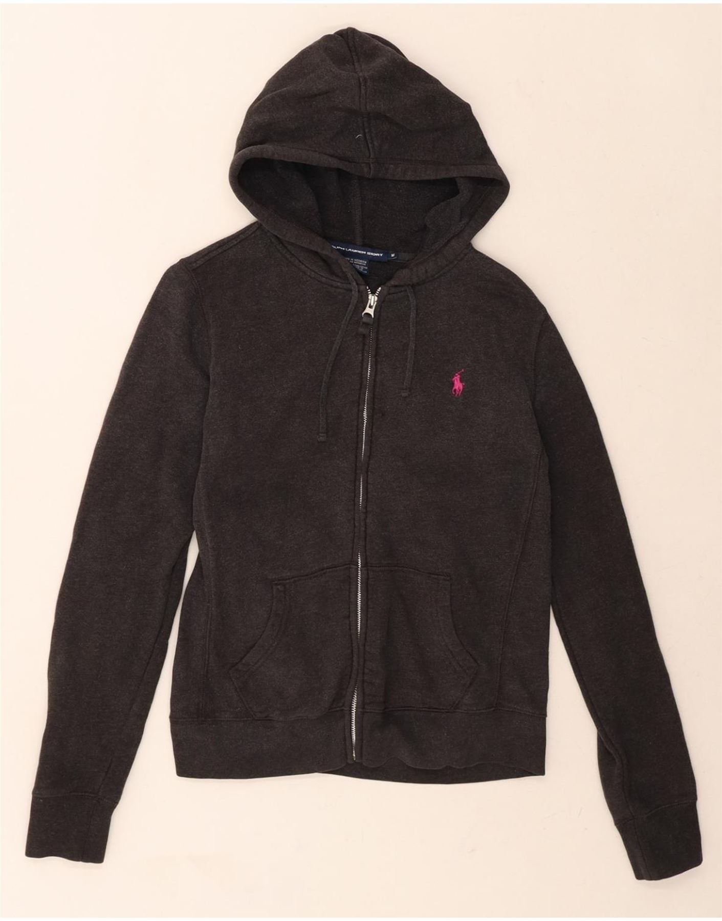 RALPH LAUREN Womens Zip Hoodie Sweater UK 12 Medium Grey Cotton