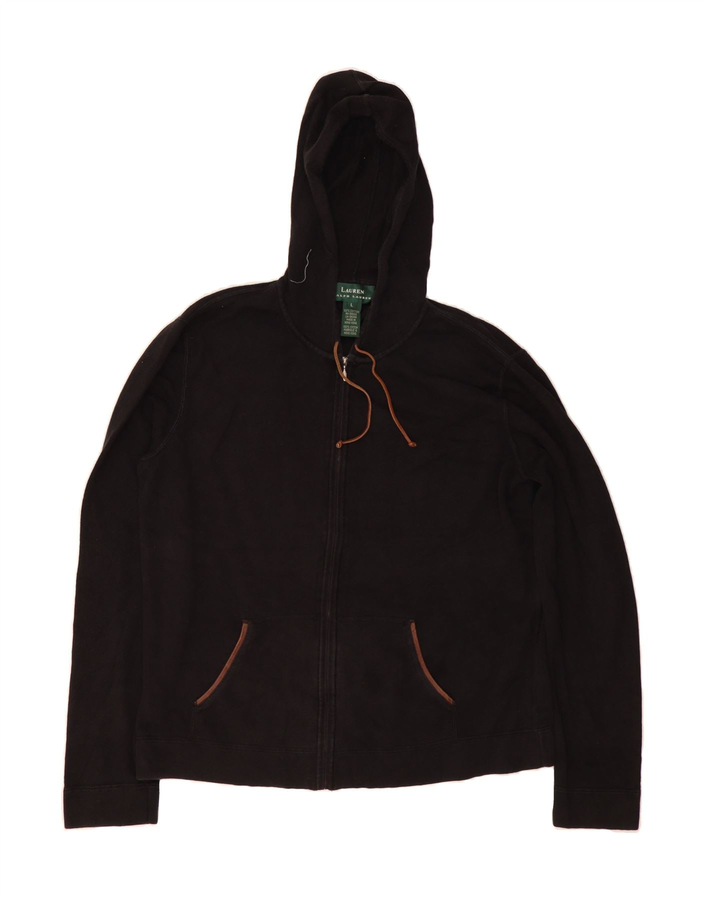 RALPH LAUREN Womens Zip Hoodie Sweater UK 16 Large Black Cotton