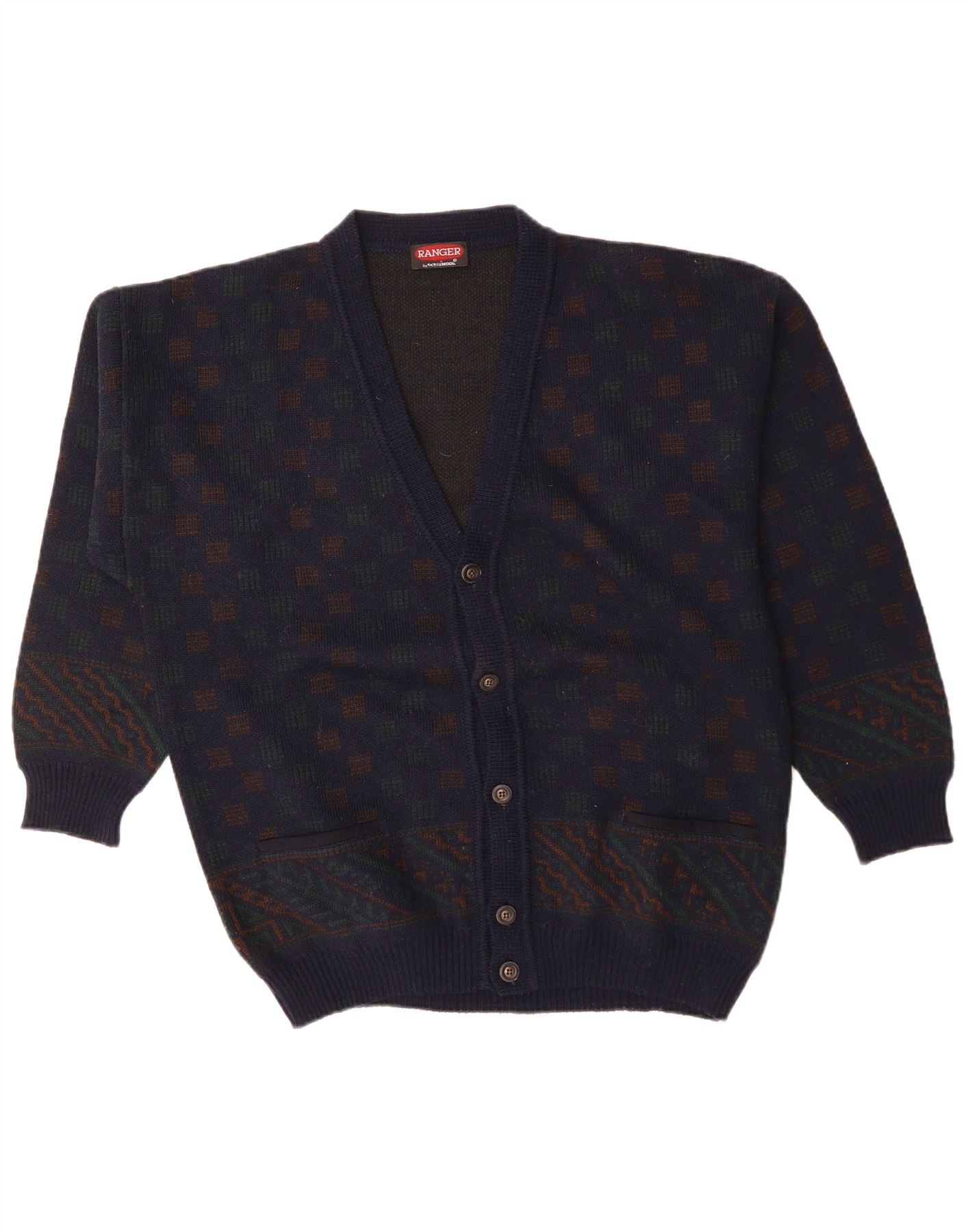Męski sweter rozpinany Ranger XL, granatowy, geometryczny