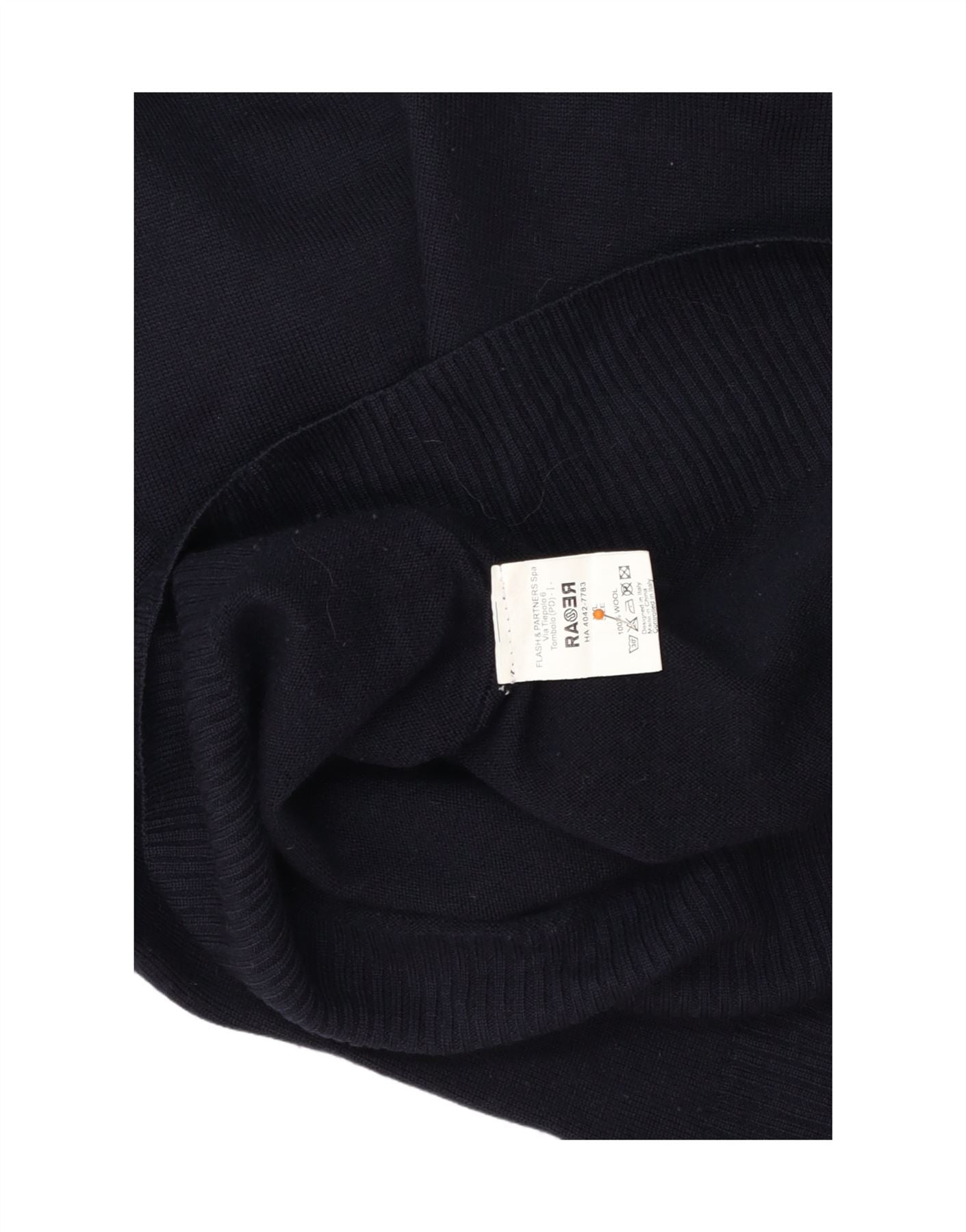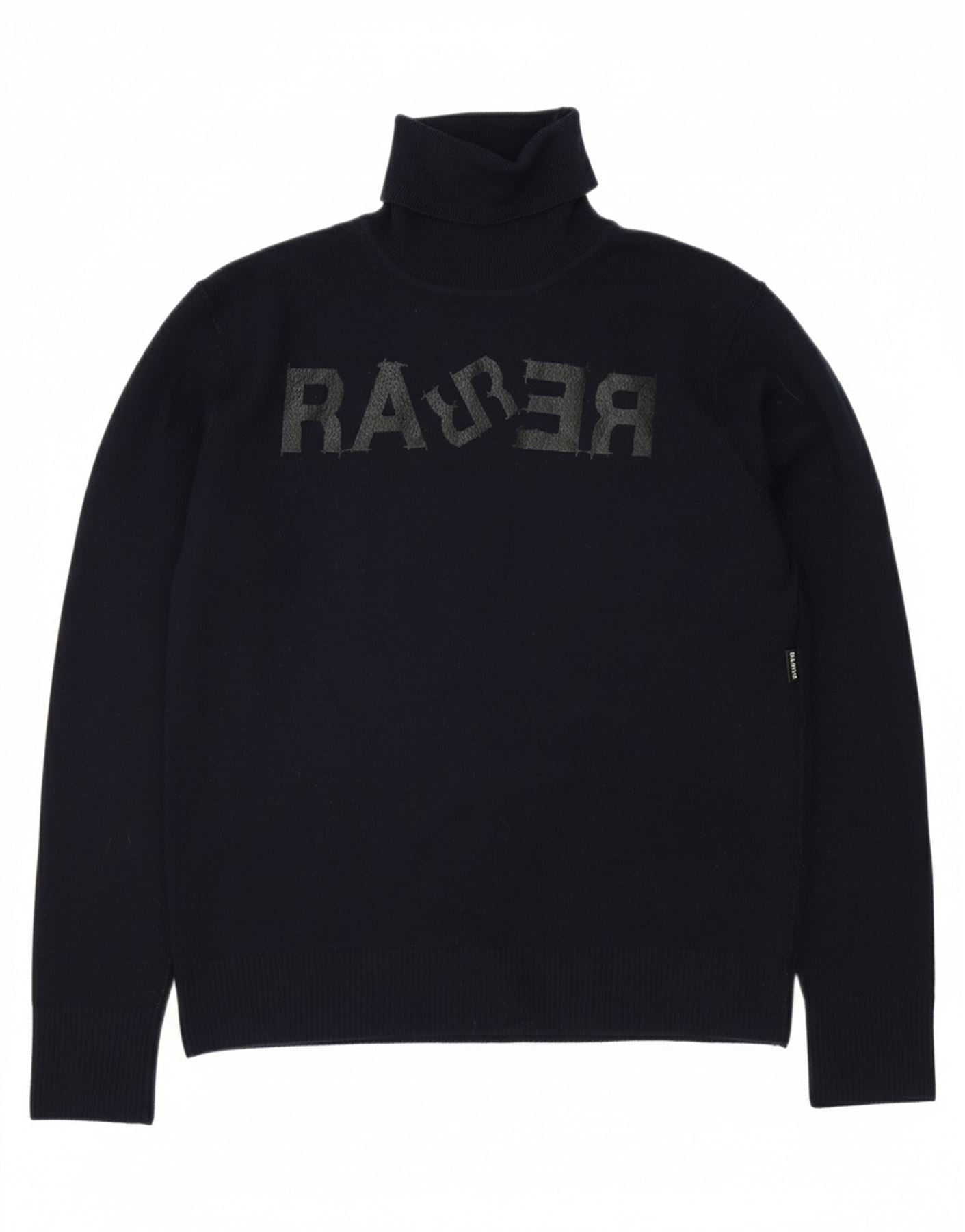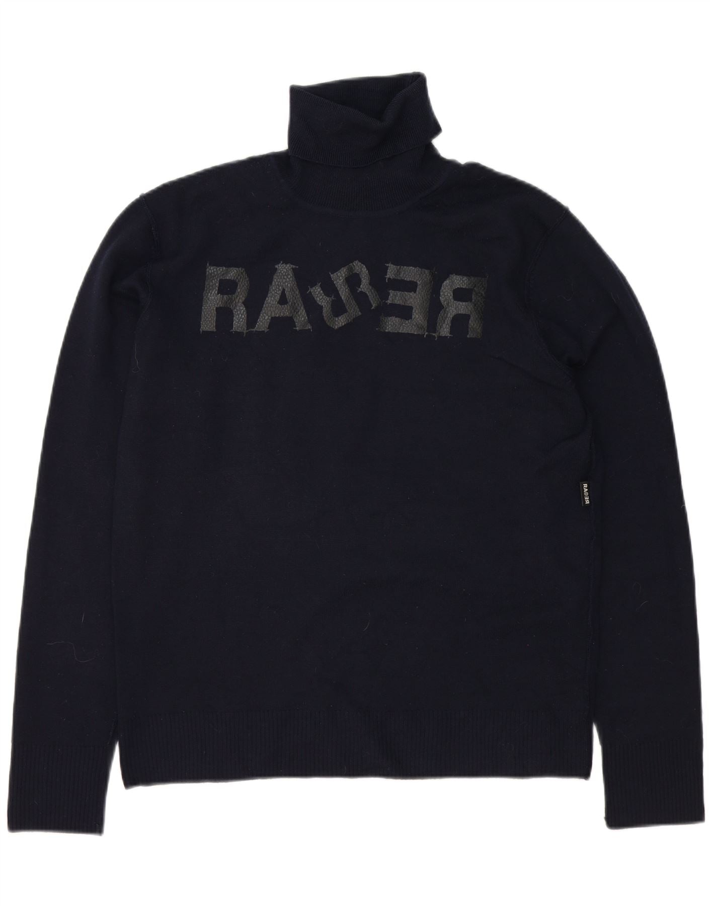 RARE Womens Graphic Roll Neck Jumper Sweater UK 20 2XL Navy Blue Wool