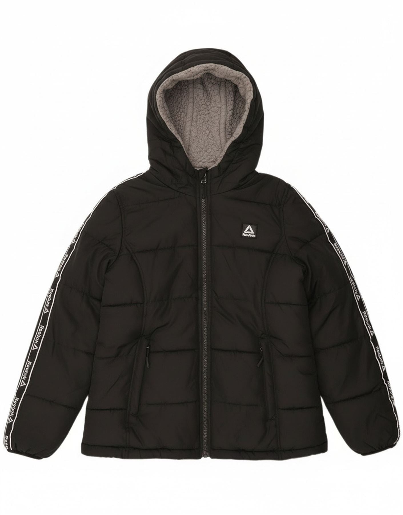 Damska wyściełana kurtka z kapturem i grafiką Reebok UK 10, mała czarna