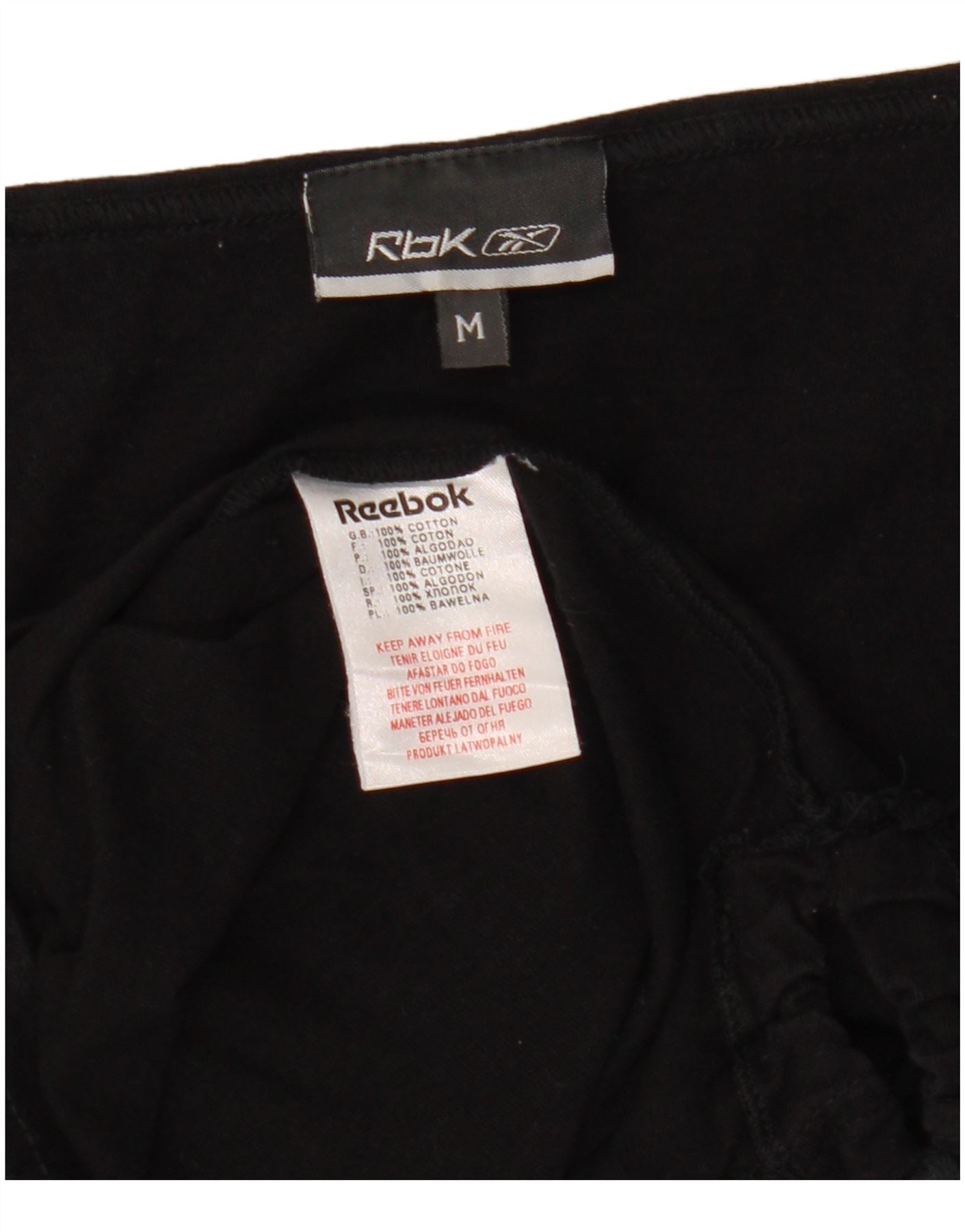 Damski top graficzny REEBOK z długim rękawem UK 12, średni czarny, bawełniany