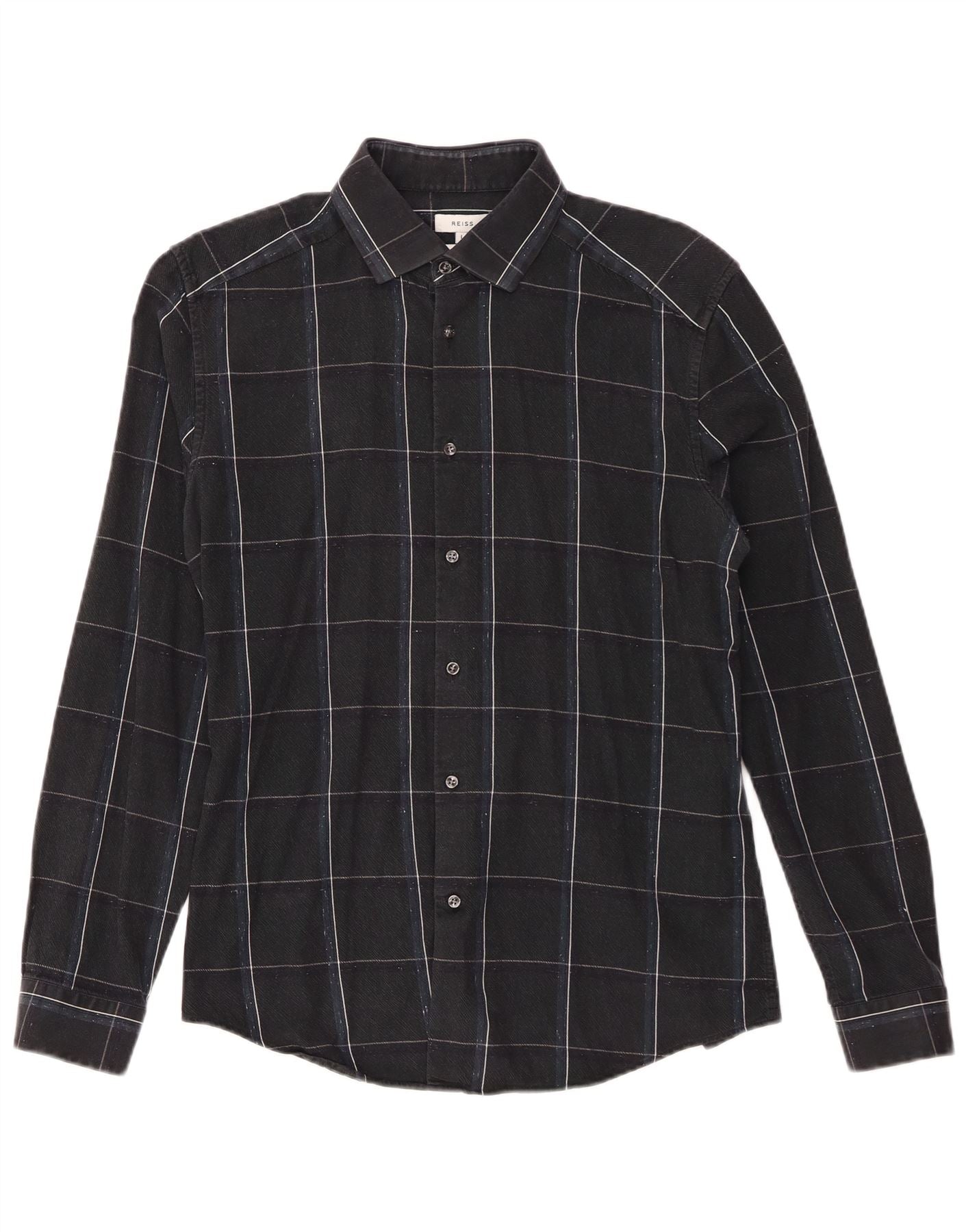 Koszula flanelowa męska Reiss Slim Fit, duża, bawełniana w granatową kratę
