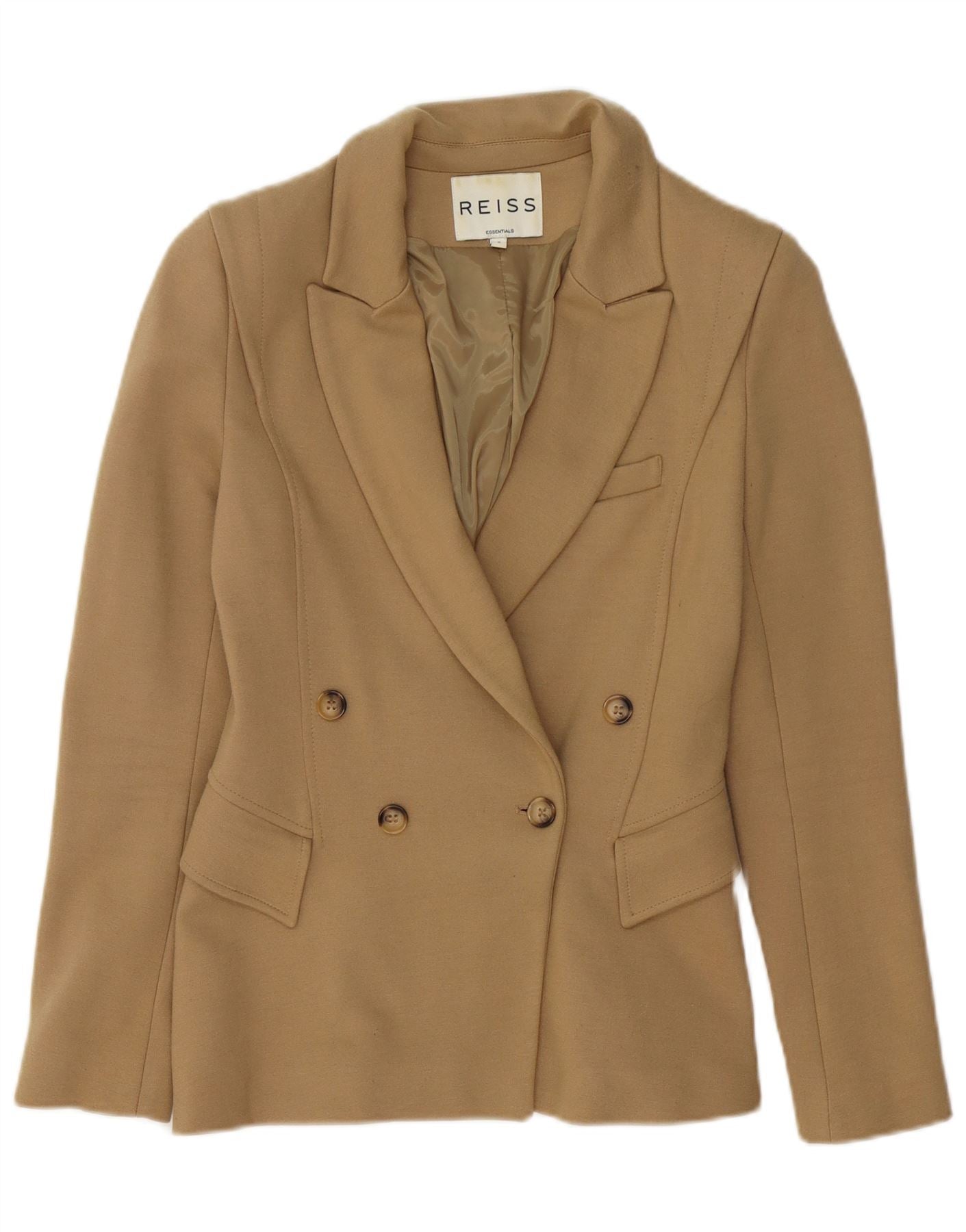 REISS Womens Double Breasted Blazer Jacket UK 10 Small Beige Viscose