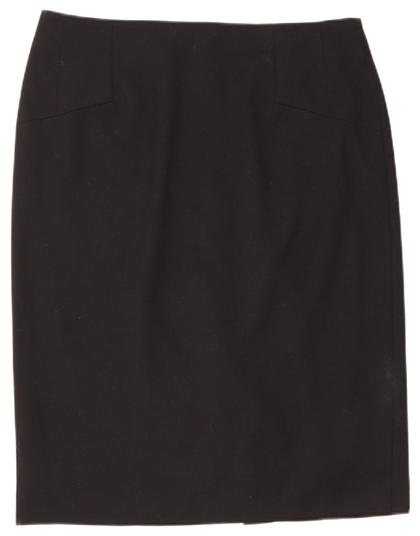 REISS Womens Straight Skirt UK 14 Large W32 Black Wool