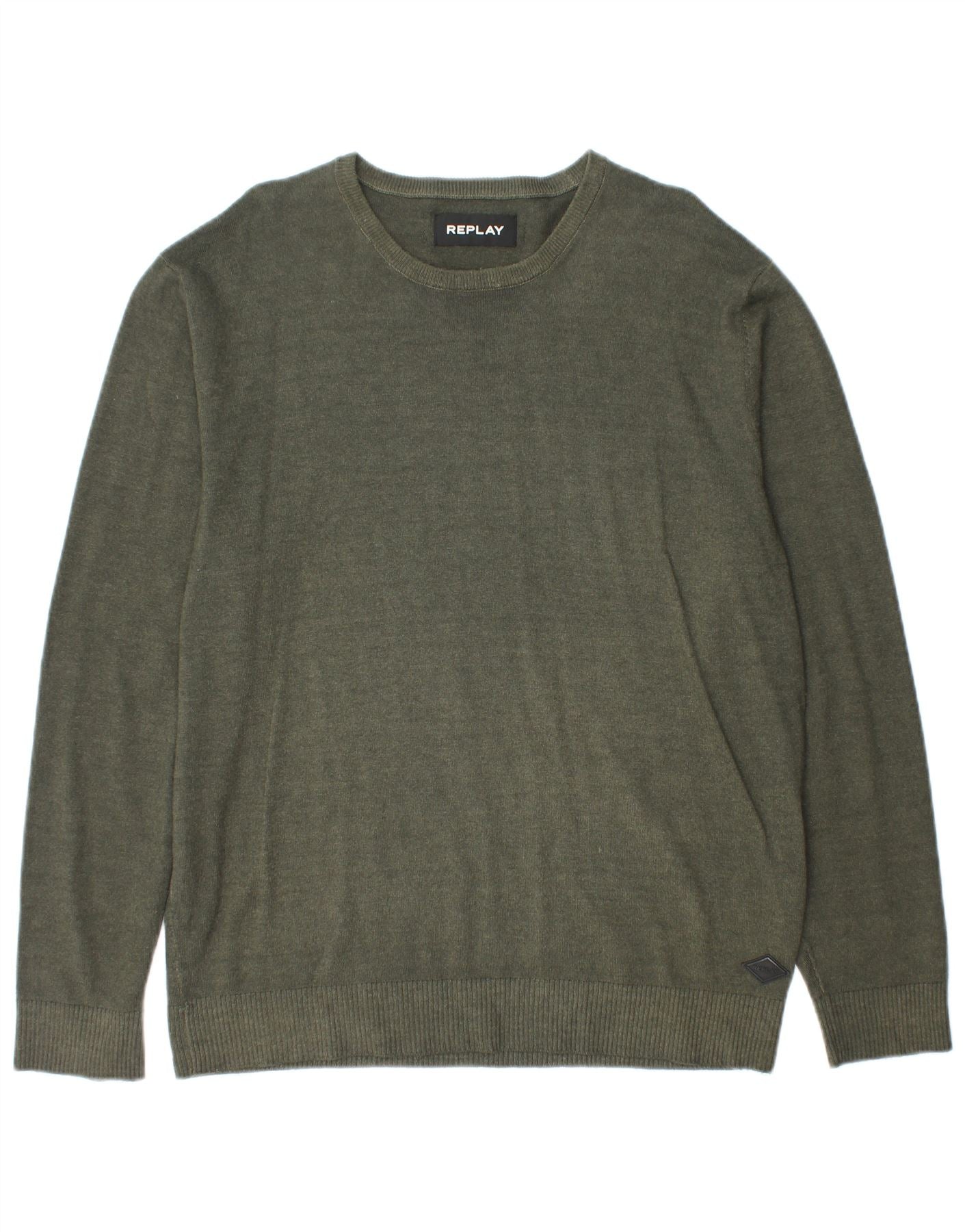 Męski sweter z dekoltem w łódkę REPLAY XL, wełniany khaki