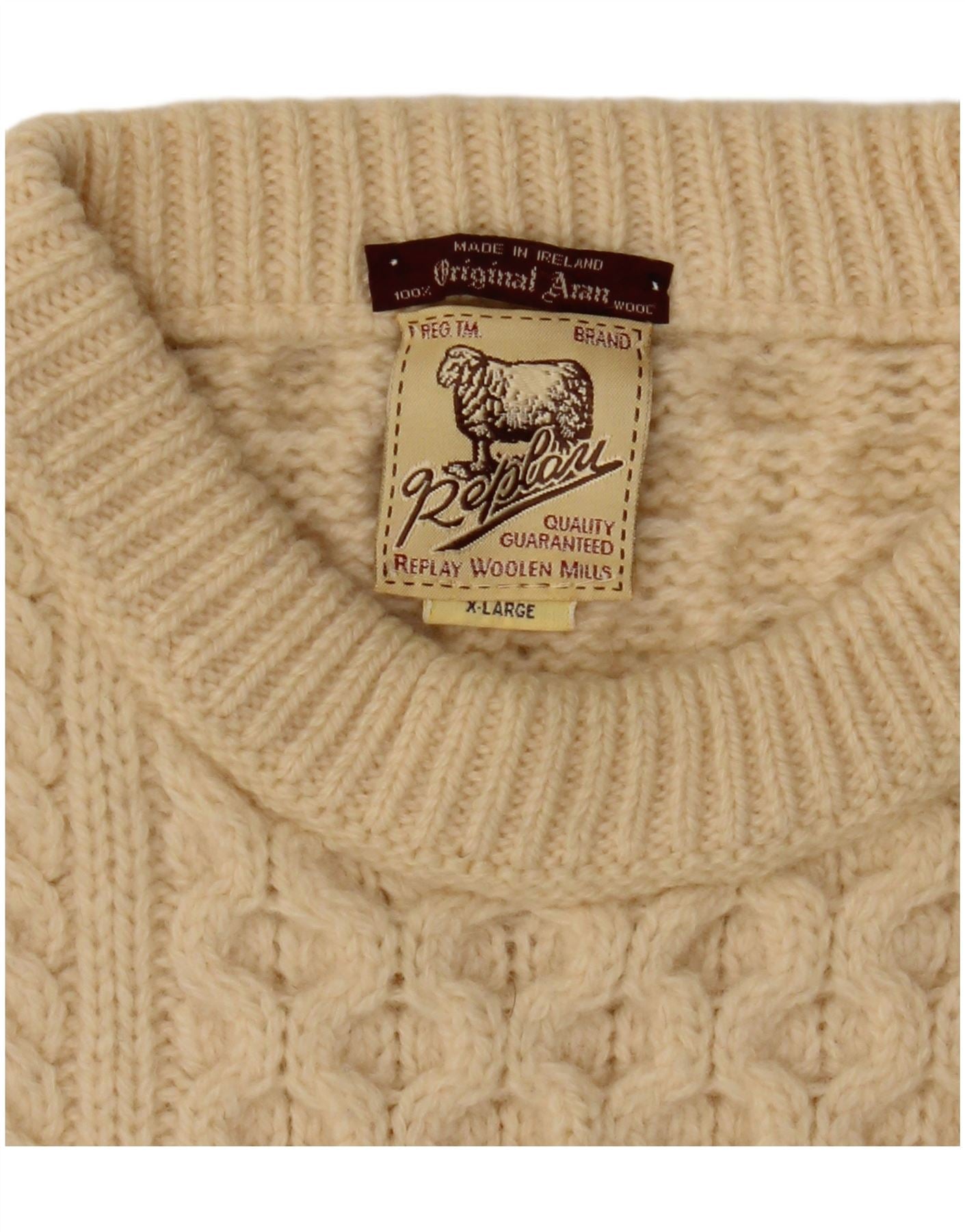 Męski sweter z okrągłym dekoltem REPLAY XL w kolorze złamanej bieli, wełniany