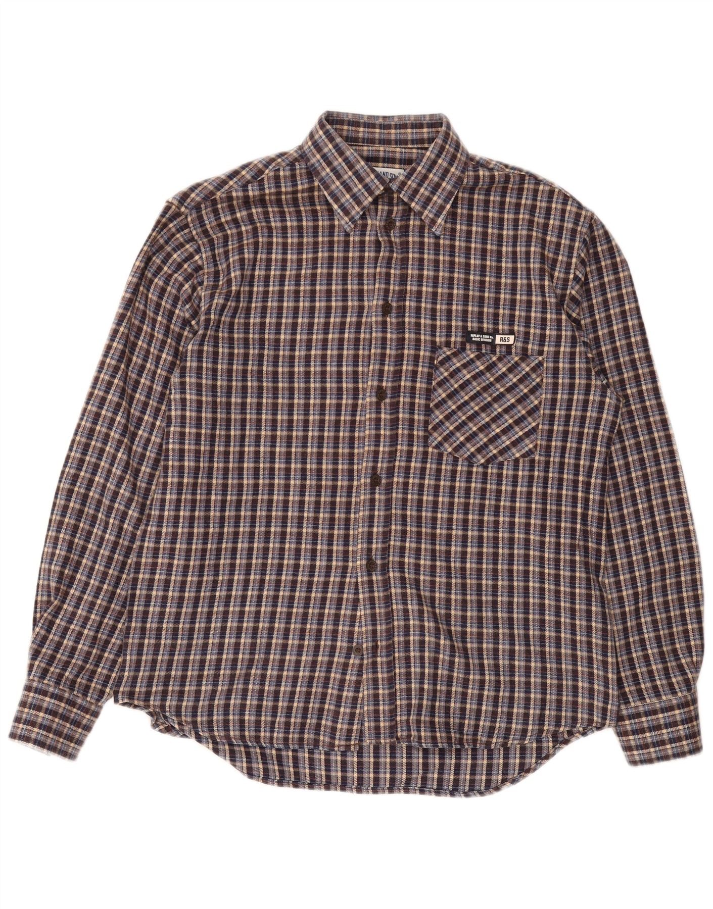 Męska koszula flanelowa REPLAY, duża, granatowa, akrylowa w kratę
