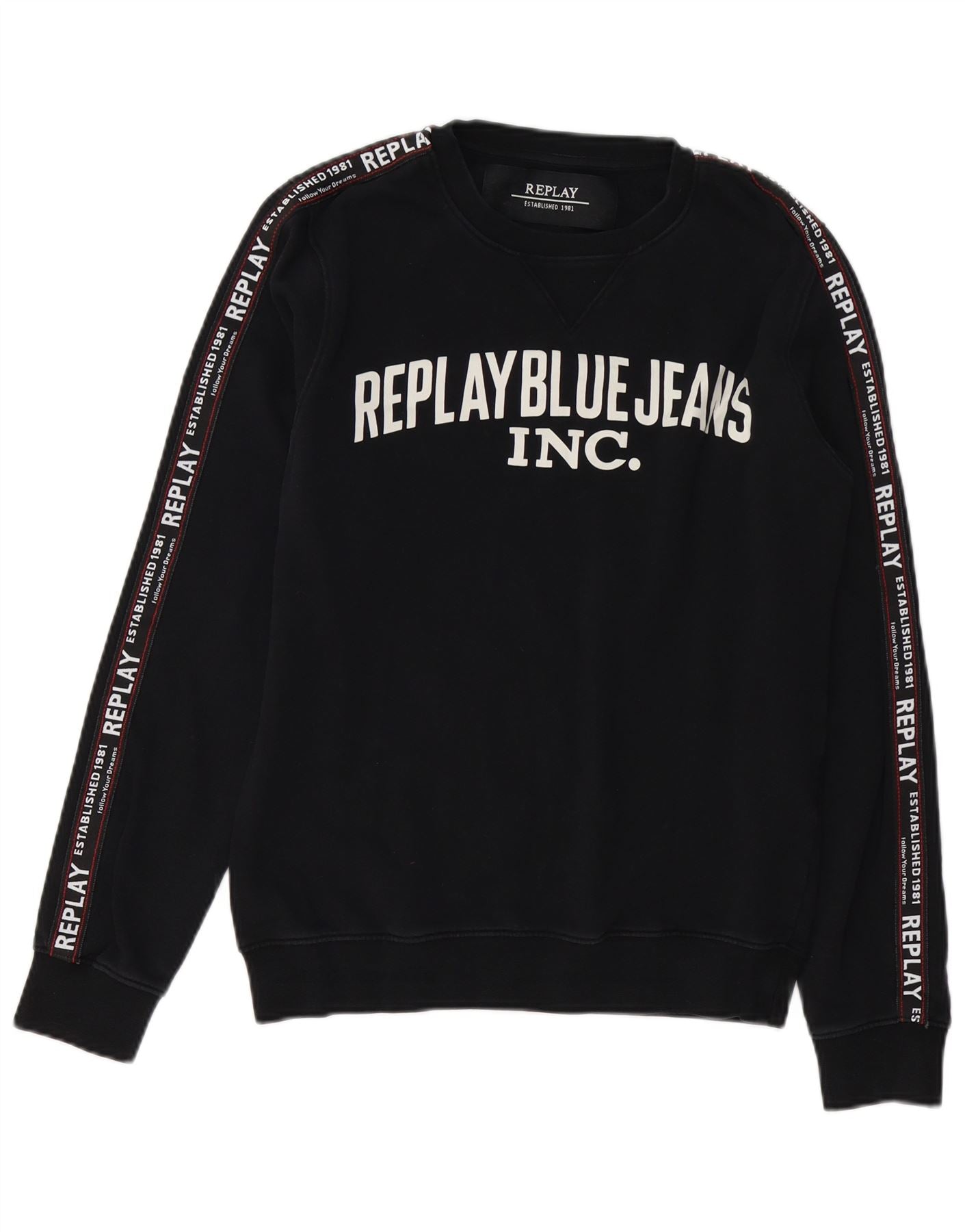Męska bluza z grafiką REPLAY, średnia czarna, bawełniana