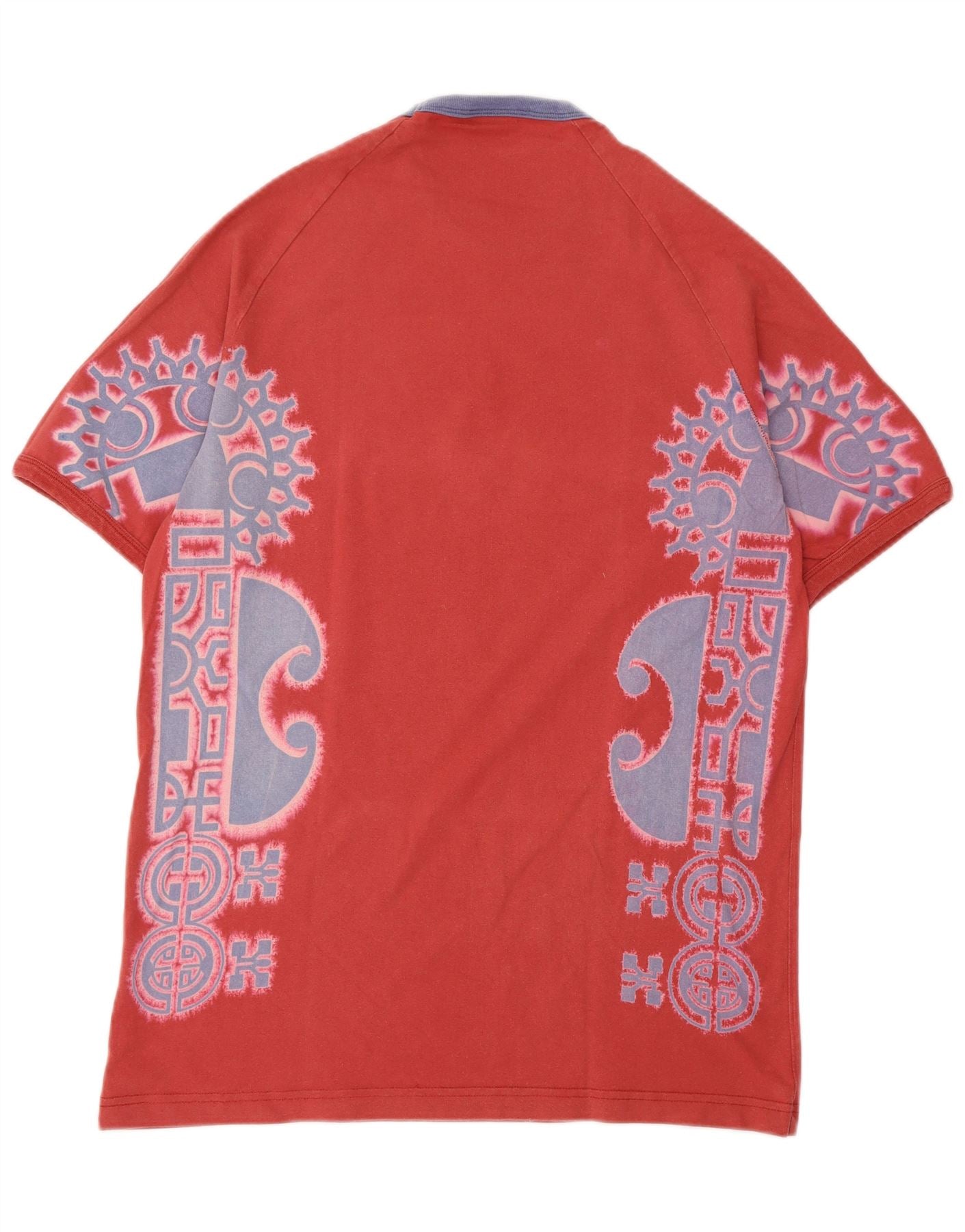 REEBOK Męski graficzny top z długim rękawem, mały, czerwony, bawełniany w bloki kolorów