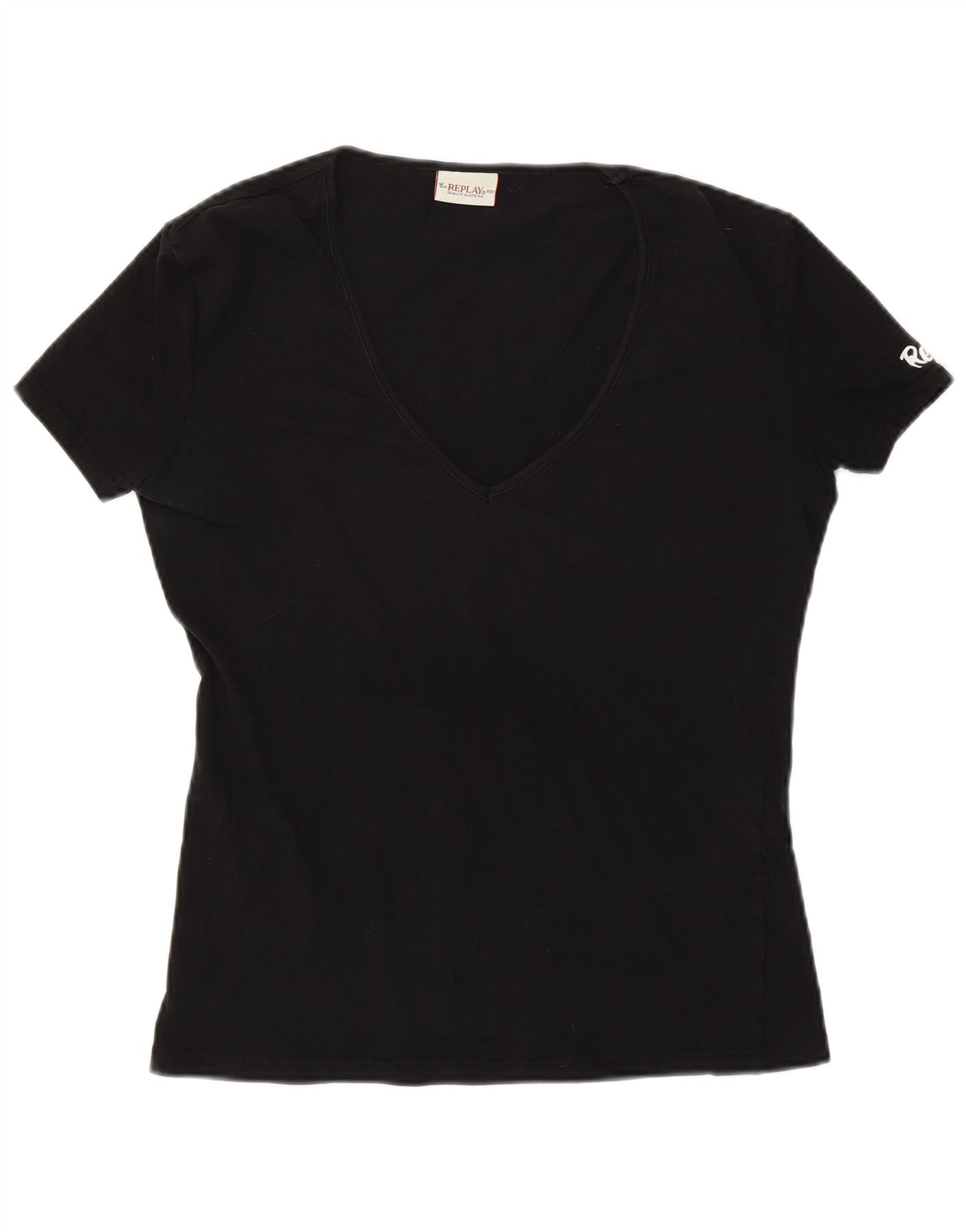 Damska koszulka z grafiką REPLAY Top UK 18 XL w kolorze czarnym