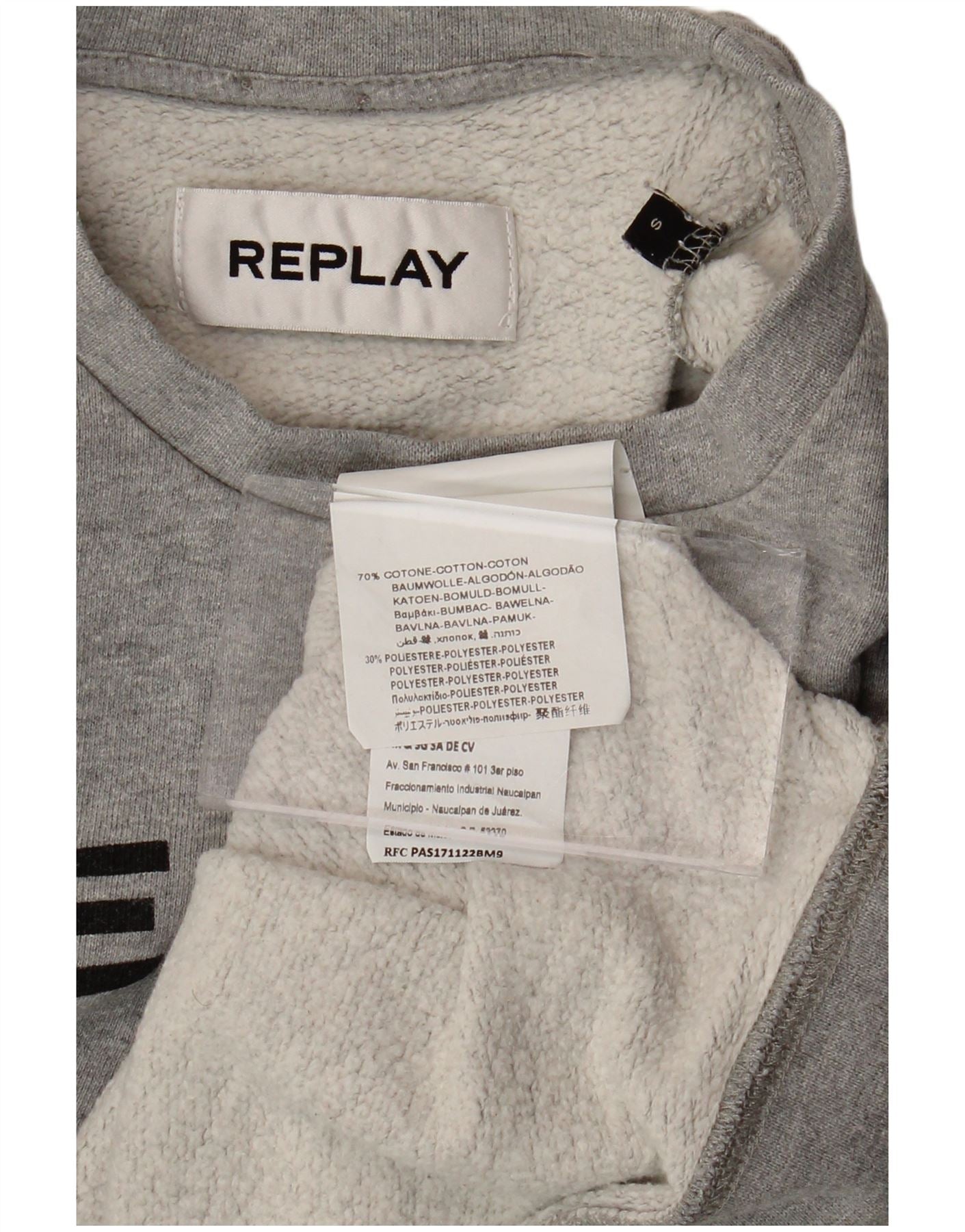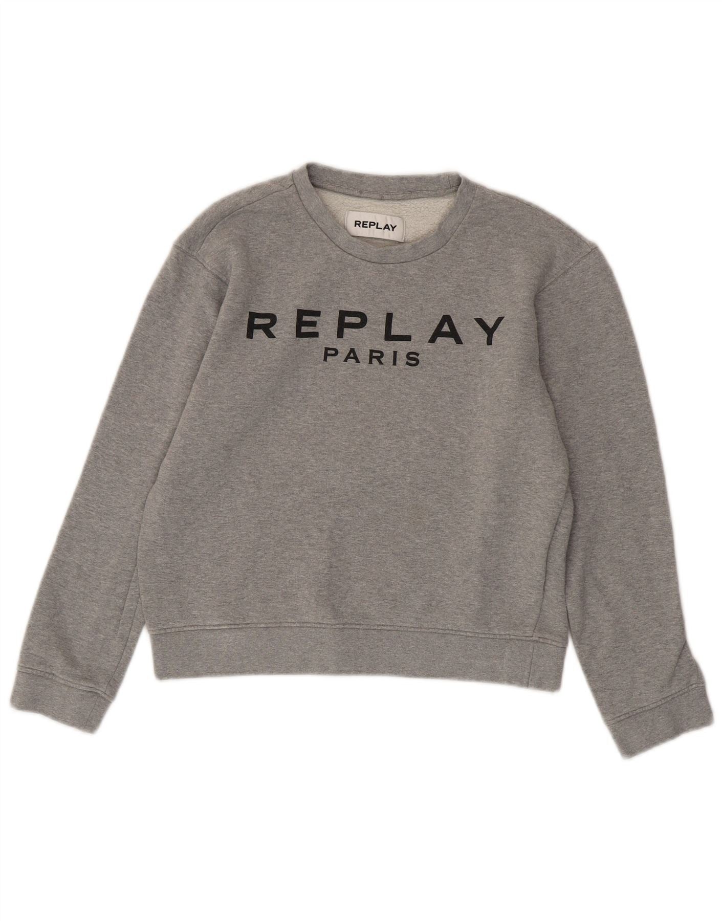 Damska bluza REPLAY Paris Crop Graphic Jumper UK 10, mała, szara bawełna