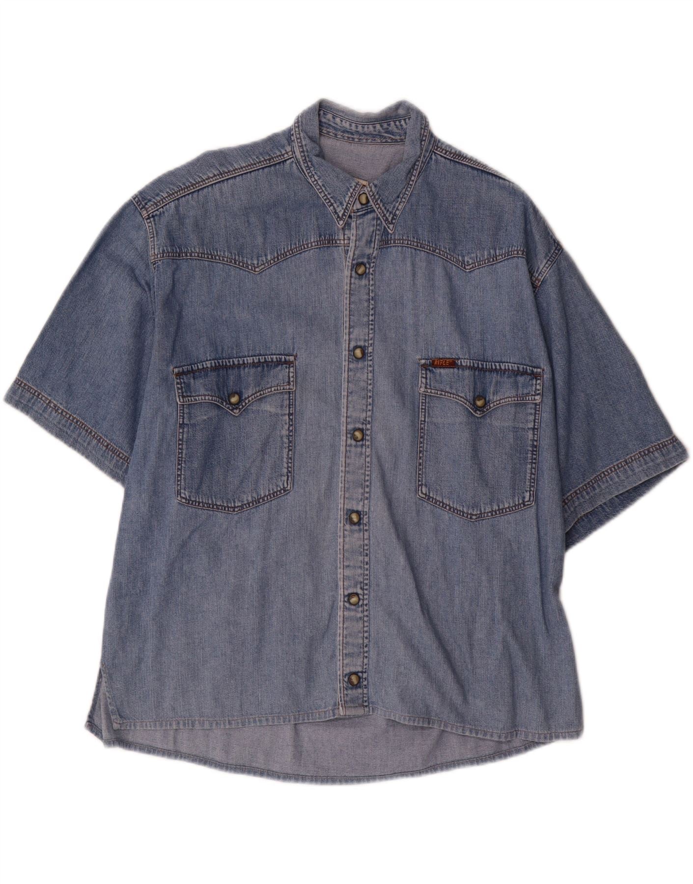Męska koszula dżinsowa z krótkim rękawem RIFLE, bawełniana, w kolorze średnioniebieskim