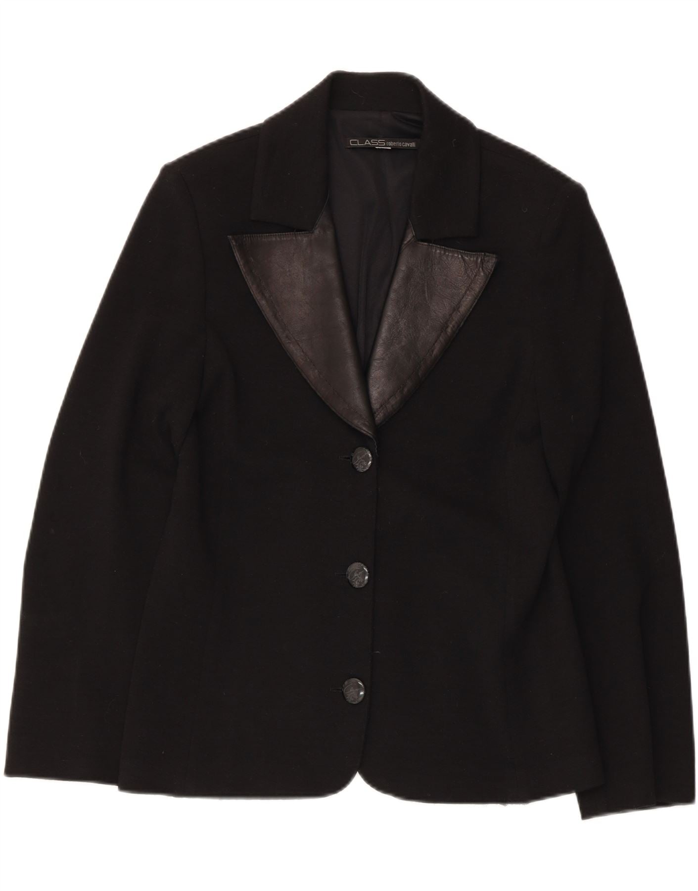 ROBERTO CAVALLI Womens 3 Button Blazer Jacket UK 12 Medium Black Wool
