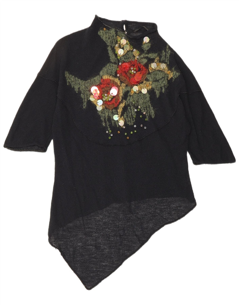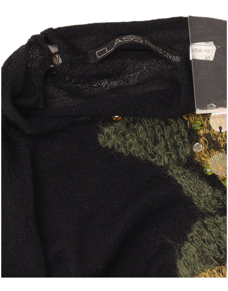 ROBERTO CAVALLI Womens Turtle Neck Jumper Sweater US 12 Large Black Floral