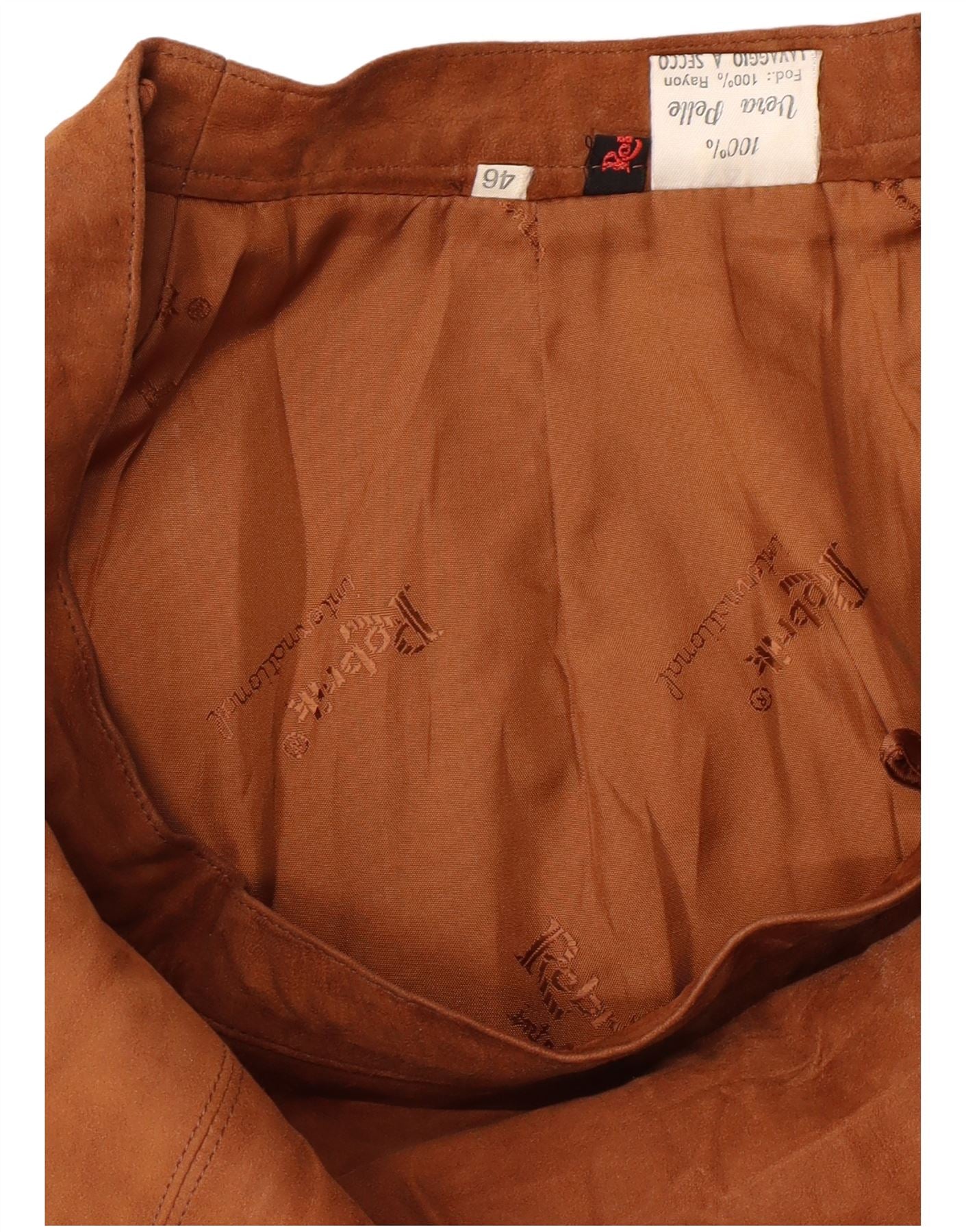 ROBRIK Damska zamszowa spódnica o linii A z wysokim stanem IT 46 Large W26 Brązowa skóra