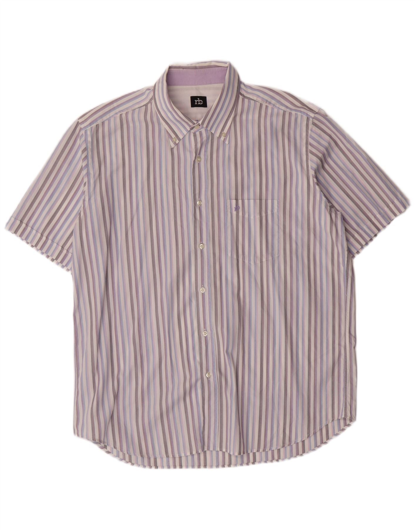 - Opis sztucznej inteligencji: Ta męska koszula Roccobarocco jest wykonana z tkaniny o wyrazistej fakturze. Posiada wielokolorowy wzór w paski w odcieniach bieli, fioletu i błękitu. Dekolt z kołnierzykiem i zapięcie na guziki zapewniają klasyczną strukturę. Krótkie rękawy i regularny krój zapewniają wygodę i swobodę. Kieszeń na piersi dodaje praktycznych detali. Całość wykończona jest subtelnym akcentem logo marki.