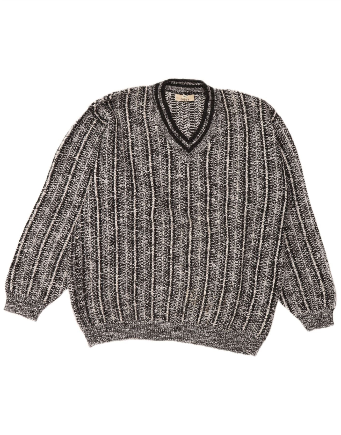 Męski sweter RODES z dekoltem w kształcie litery V, duży, akrylowy, w szare paski