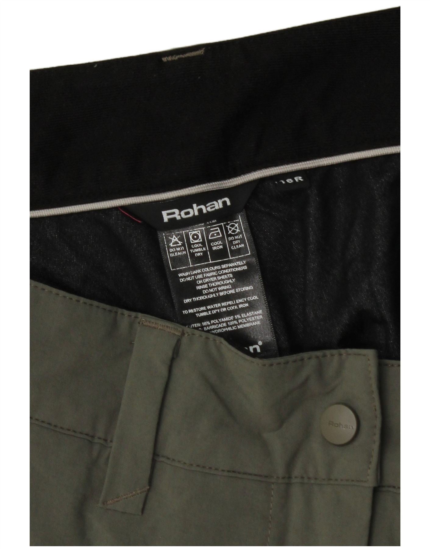 - AI Description: These Rohan womens waterproof trousers are crafted from a durable polyamide blend with elastane, offering excellent stretch and comfort. The khaki blended fabric ensures a robust yet flexible wear. They feature a practical zip closure and a mid-rise waistband for a secure fit. The regular fit offers comfortable movement, complemented by functional pockets. These trousers are designed for reliable protection and everyday utility.