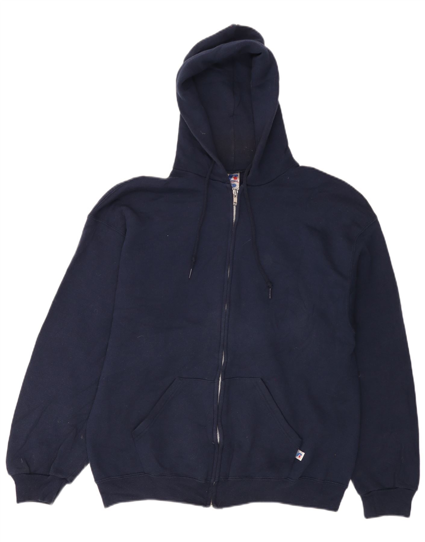 Męski sweter z kapturem i zamkiem błyskawicznym RUSSELL ATHLETIC Dri-Power, duży, granatowy, bawełniany