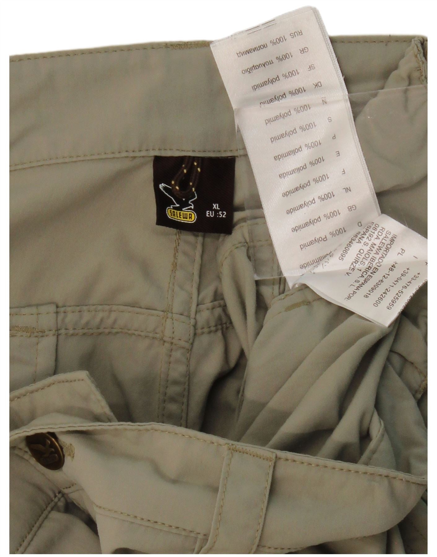 SALEWA Mens Straight Cargo Capri Trousers EU 52 XL W38 L20 Khaki Polyamide