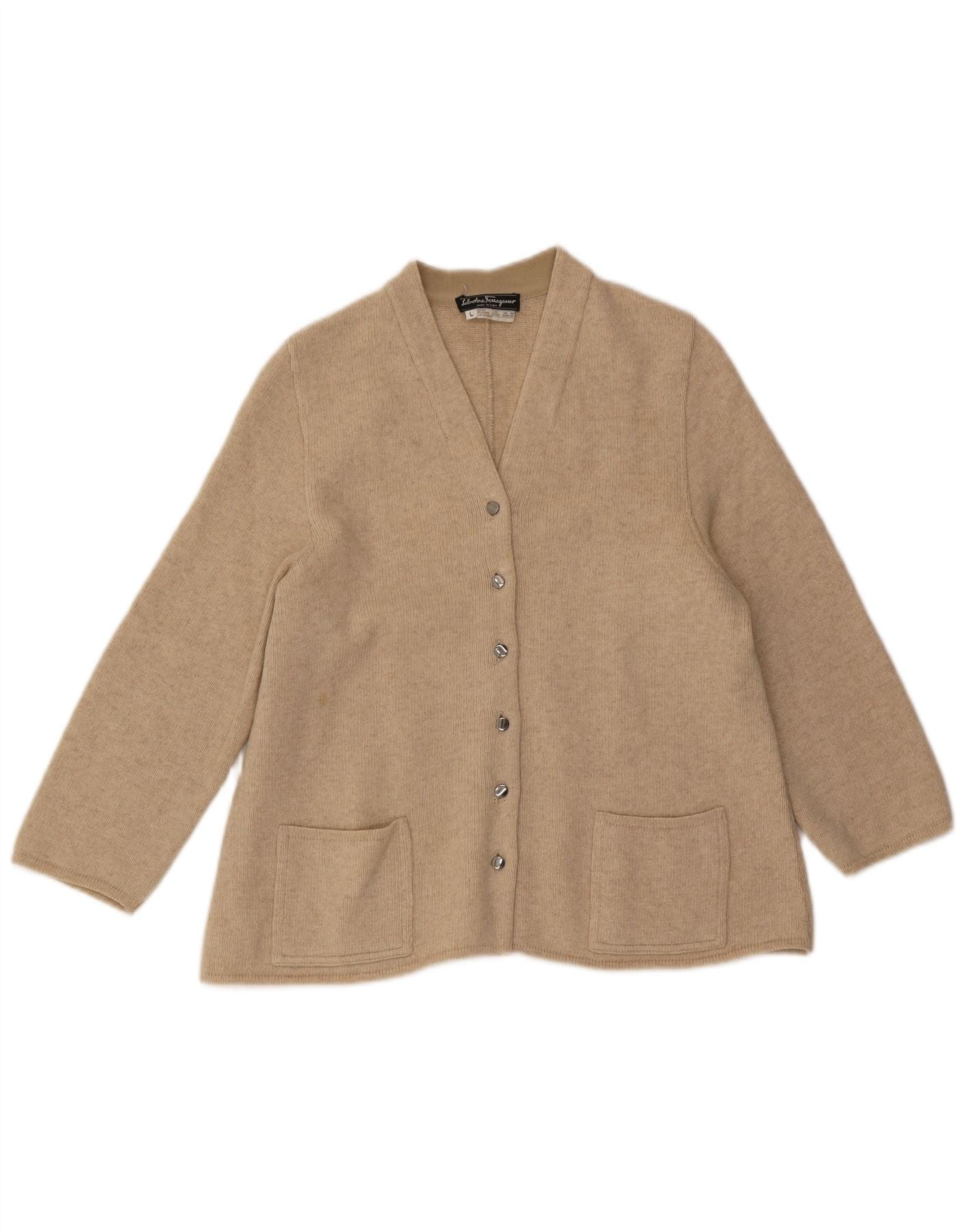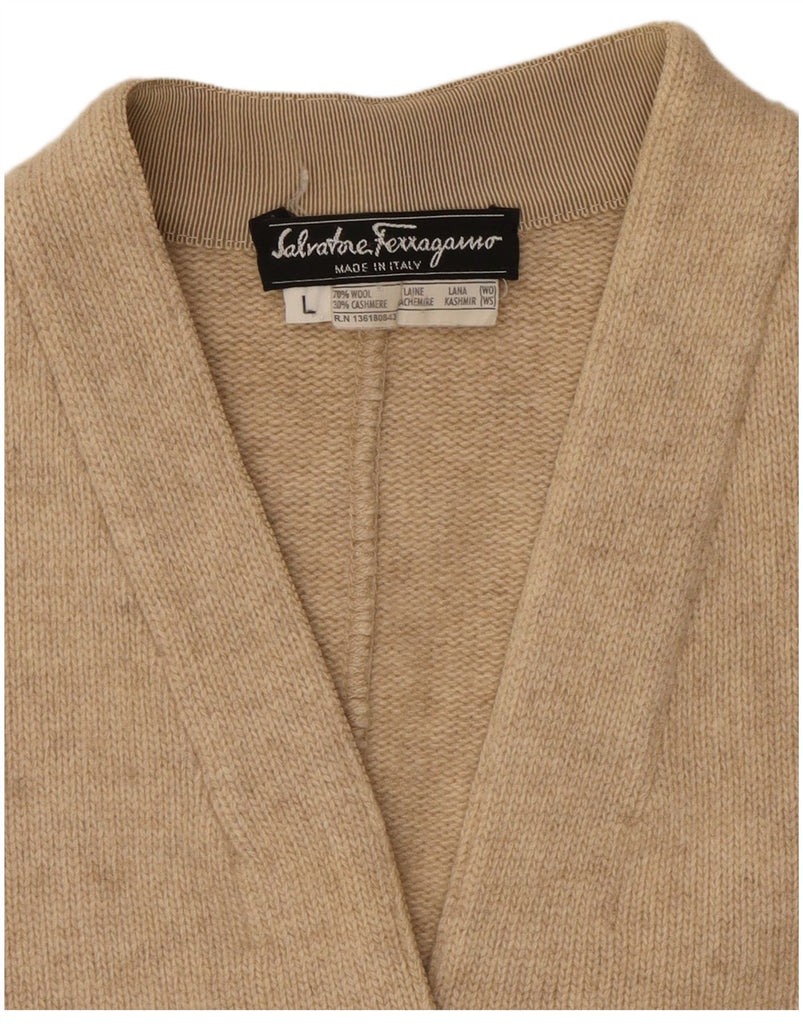 SALVATORE FERRAGAMO Womens Cardigan Sweater UK 16 Large Beige Wool