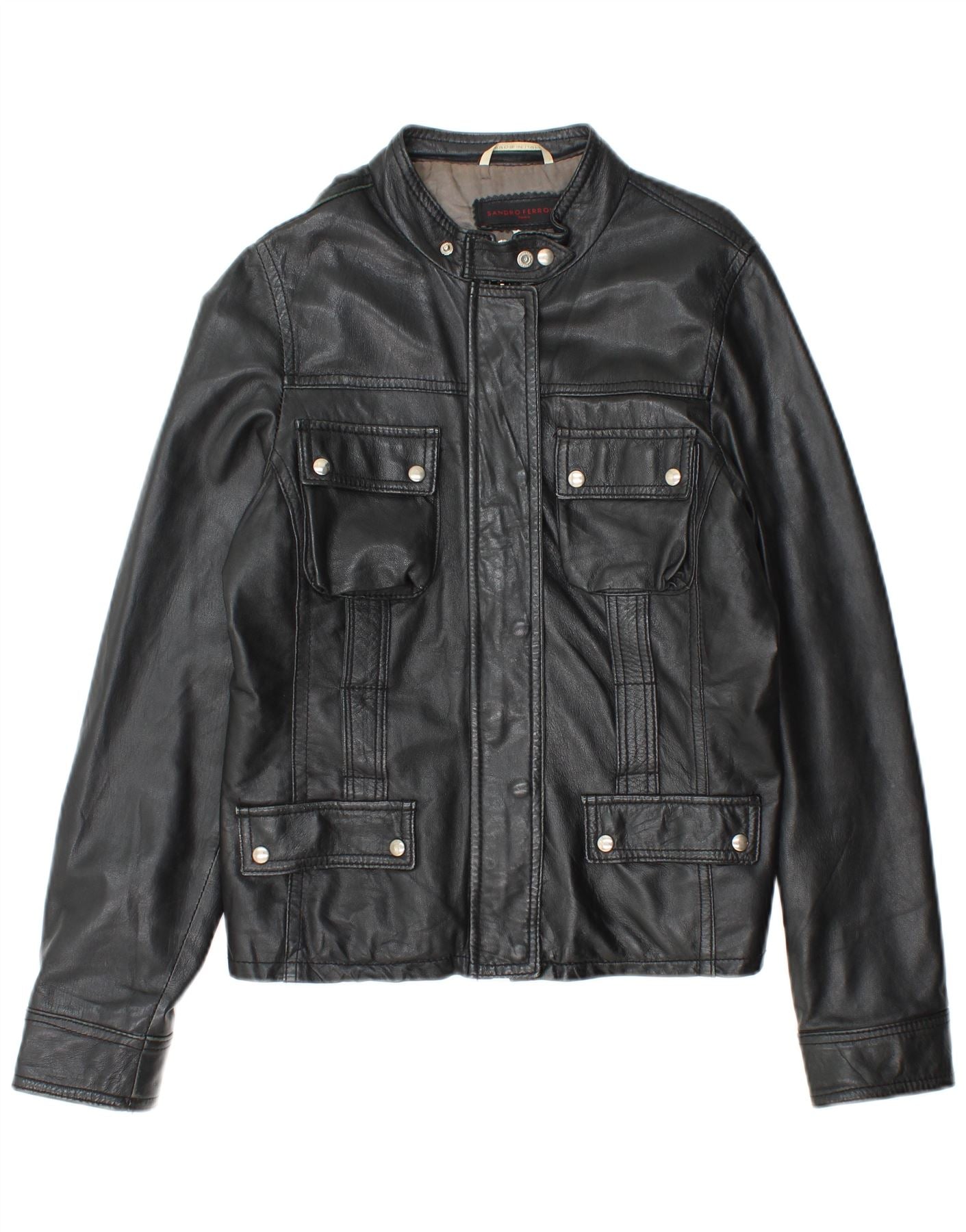 Kurtka skórzana damska SANDRO FERRONE UK 14, duża czarna skóra