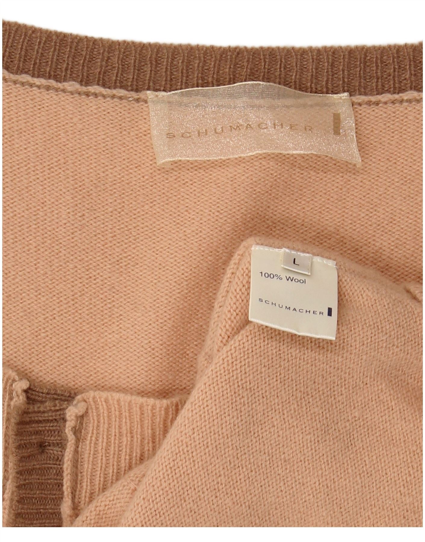 Damski sweter rozpinany SCHUMACHER bez rękawów UK 14, duży, różowy, wełniany