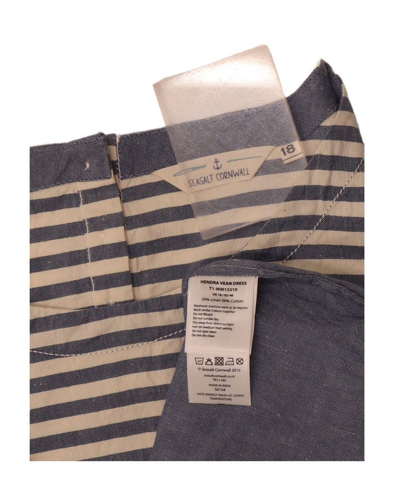 SEASALT CORNWALL Womens 3/4 Sleeve Shift Dress UK 18 XL Navy Blue Striped