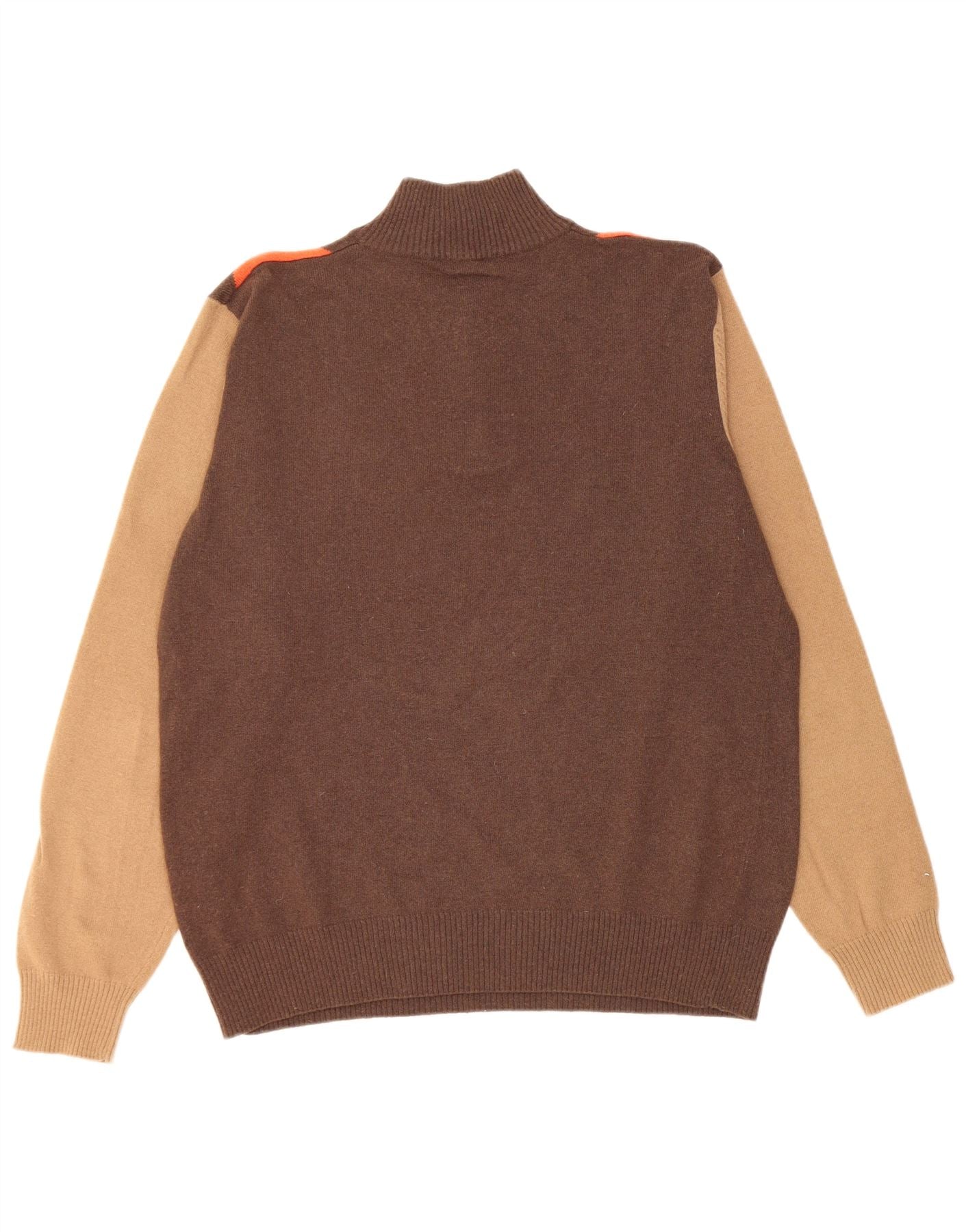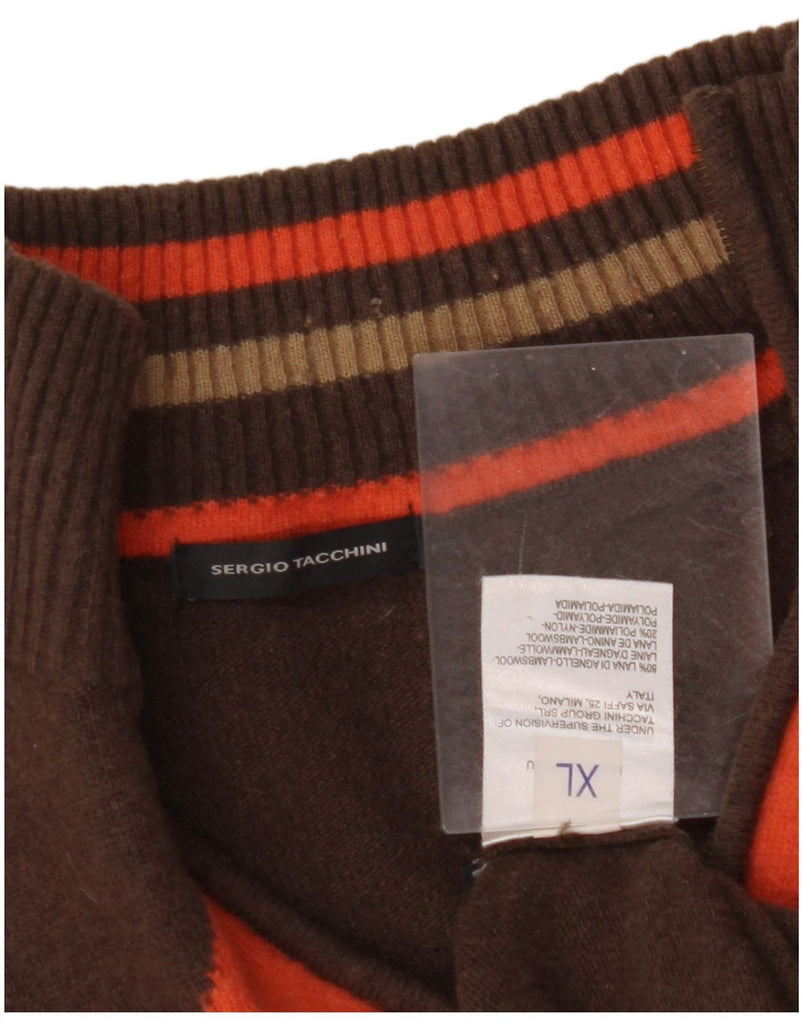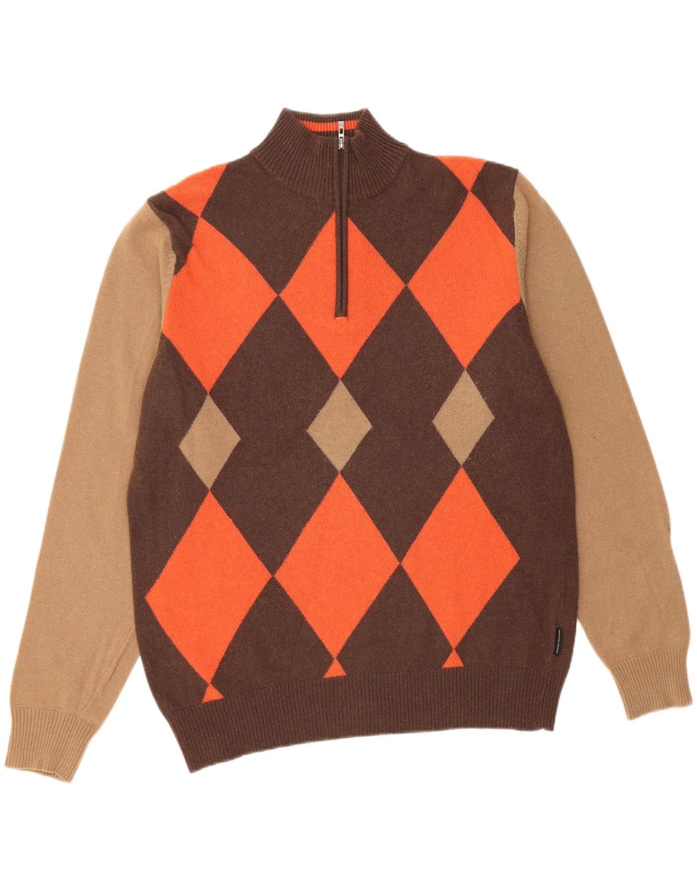 SERGIO TACCHINI Męski sweter zapinany na zamek XL Brązowy Argyle/Diamentowa wełna