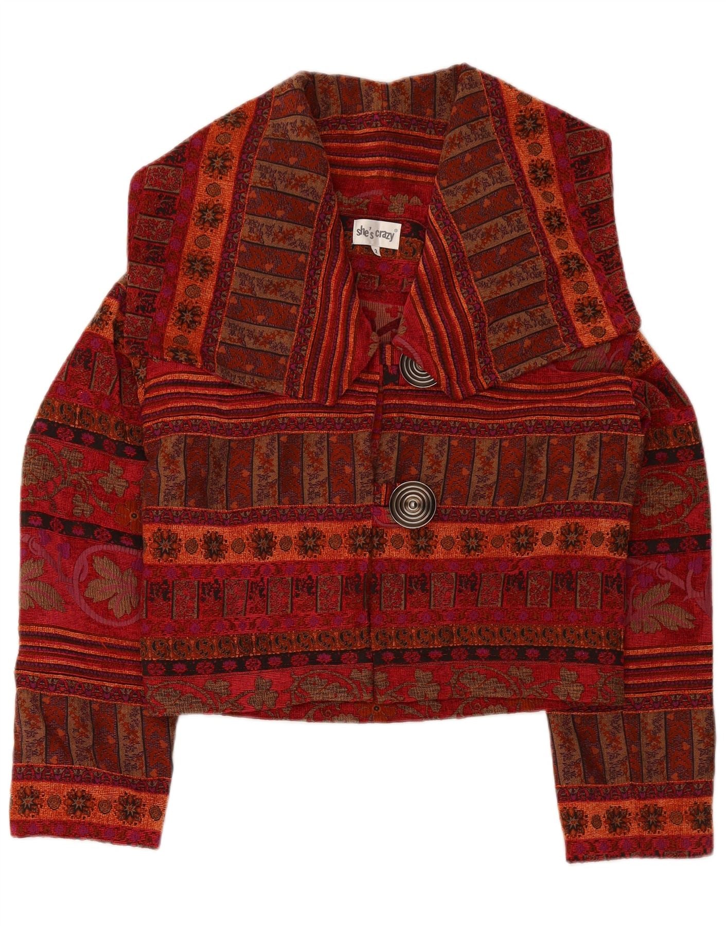 SHE'S CRAZY Damska marynarka typu Crop Oversize US 2 XS w kolorze bordowym w kwiaty