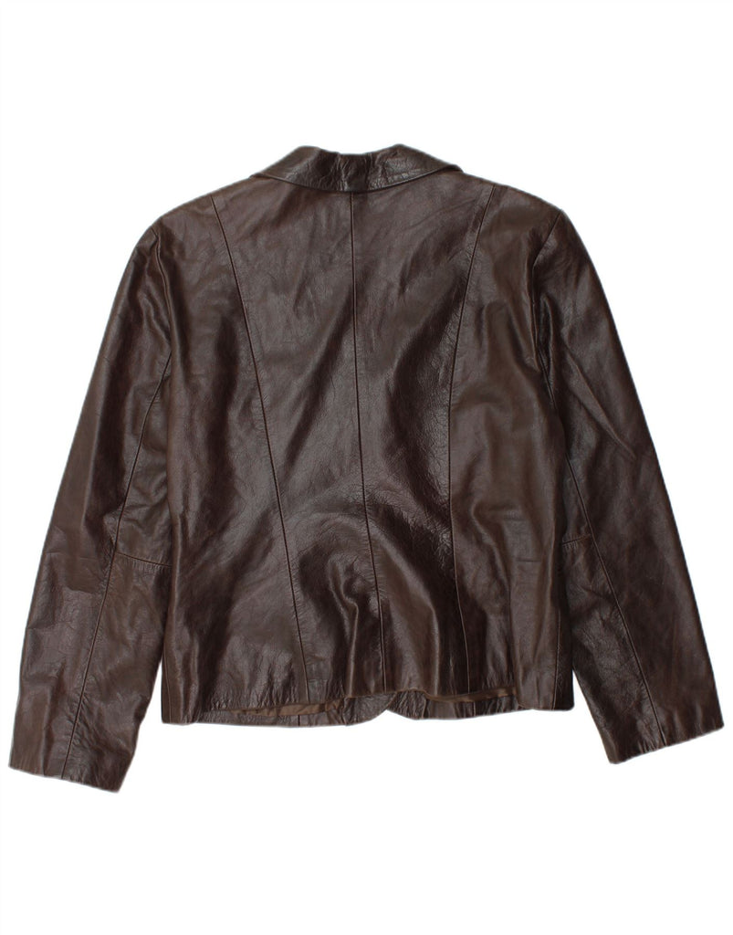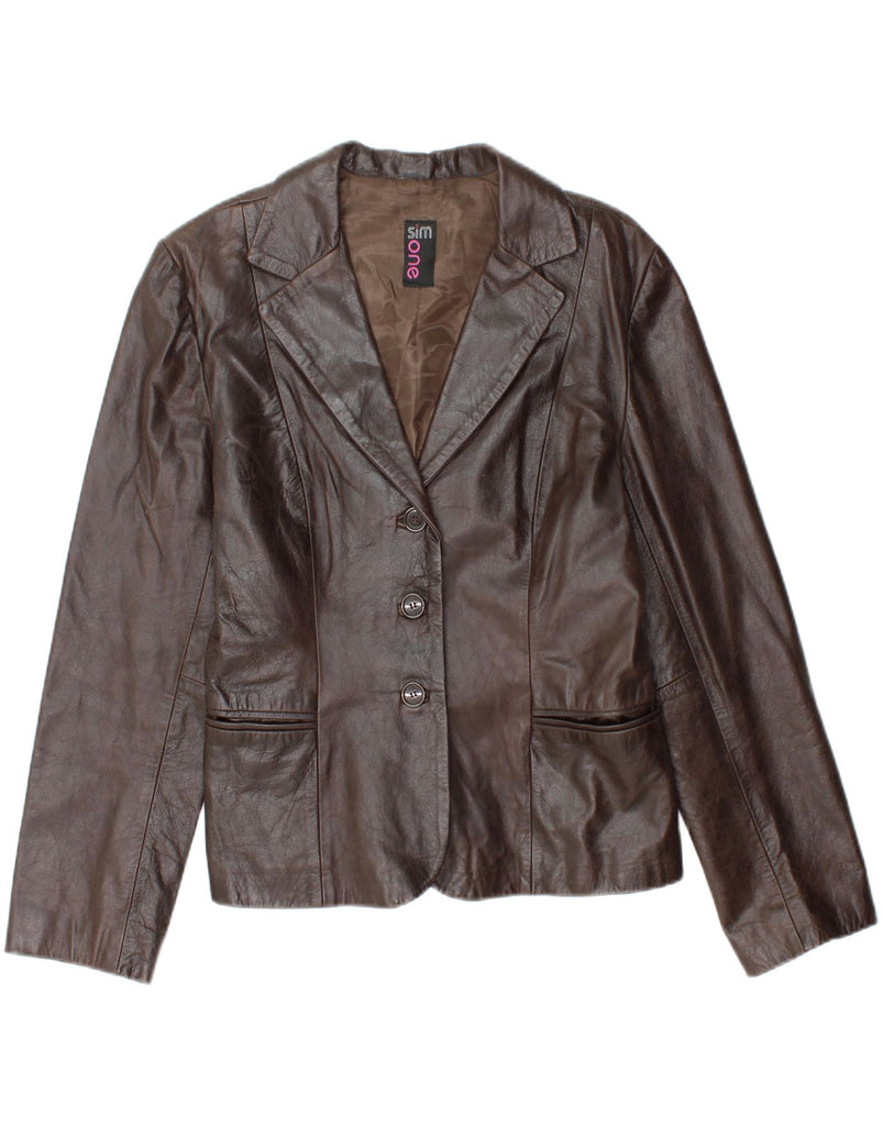 Damska marynarka skórzana zapinana na 3 guziki SIMONE IT 52 2XL Brązowa skóra