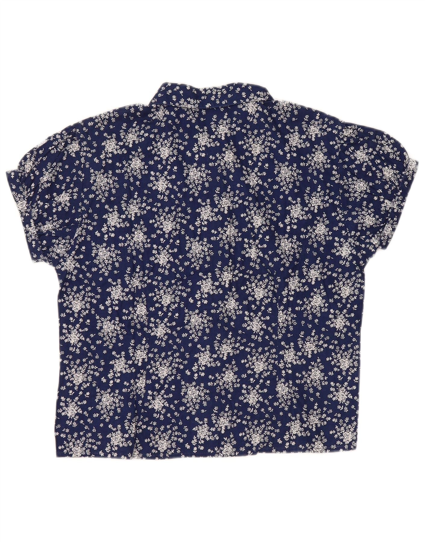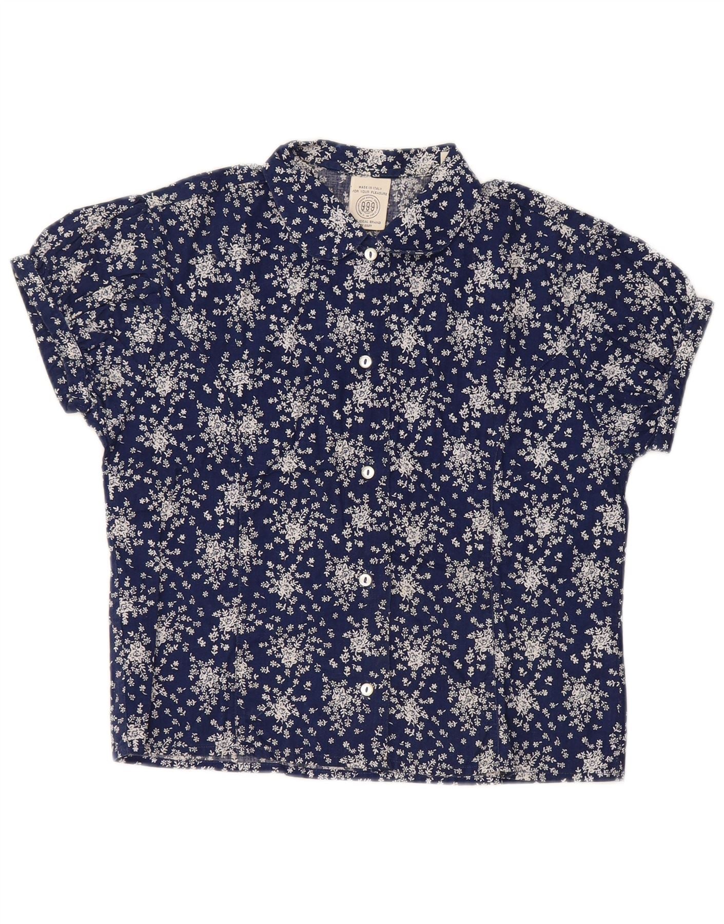 Damska bluzka SISLEY z krótkim rękawem UK 14, duża, granatowa w kwiaty